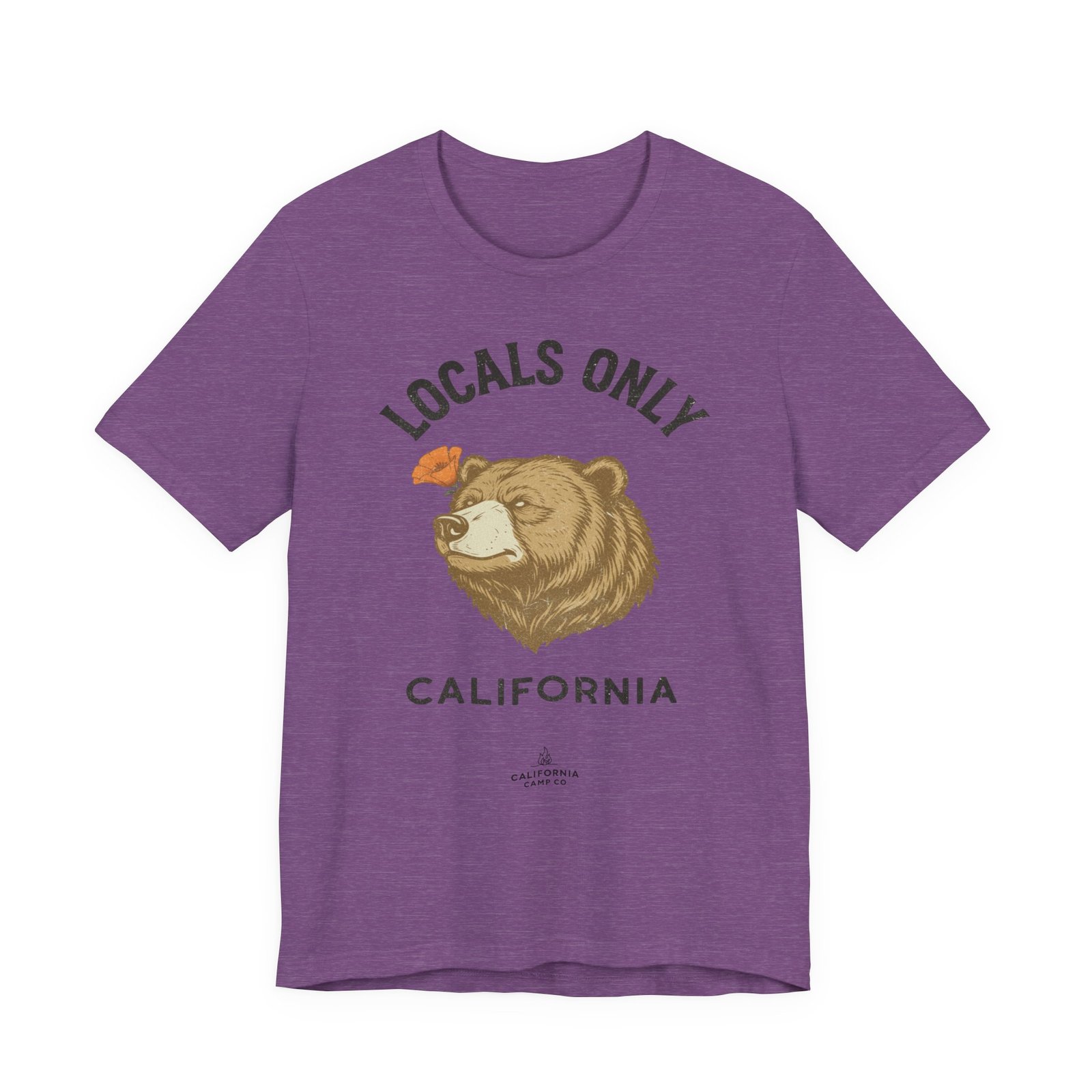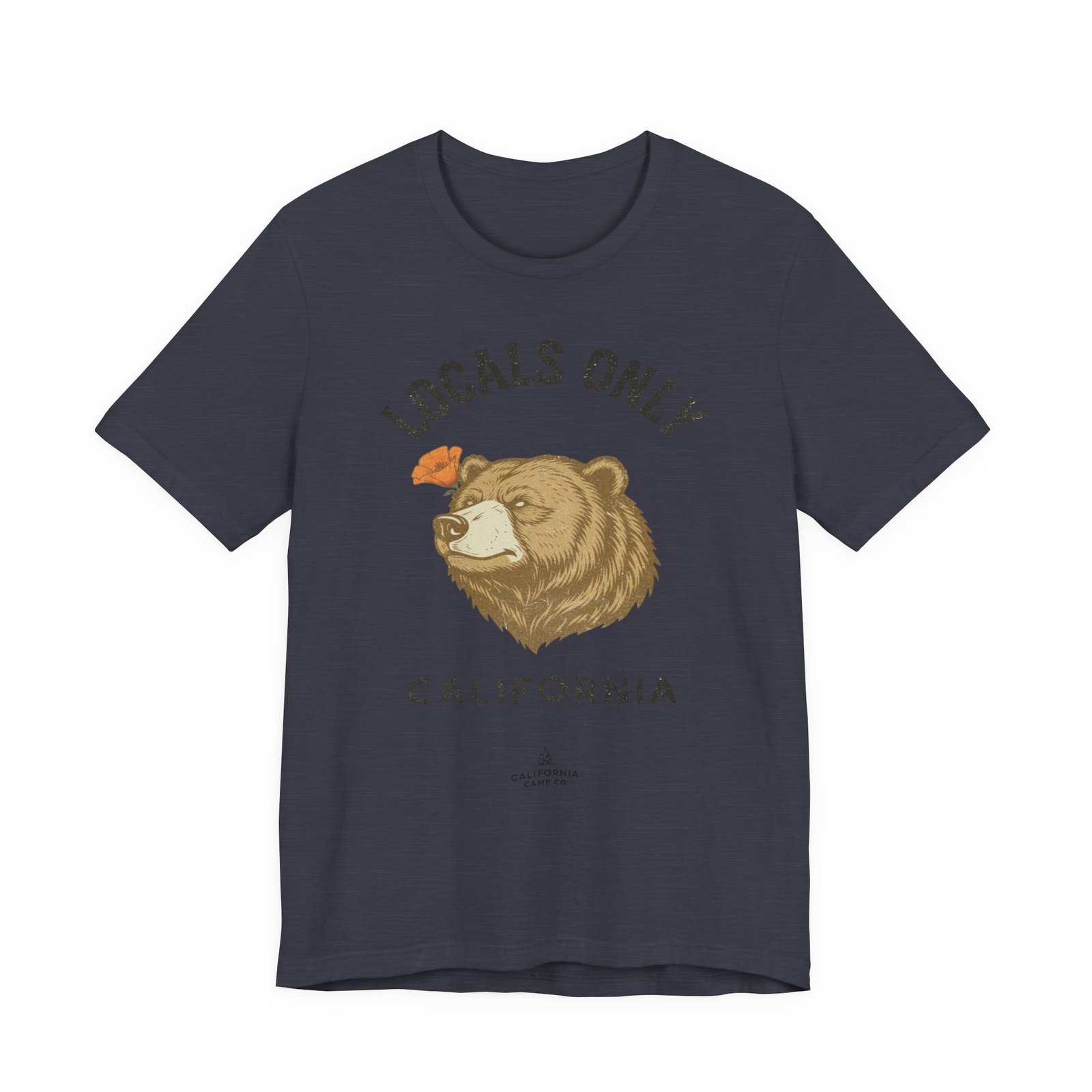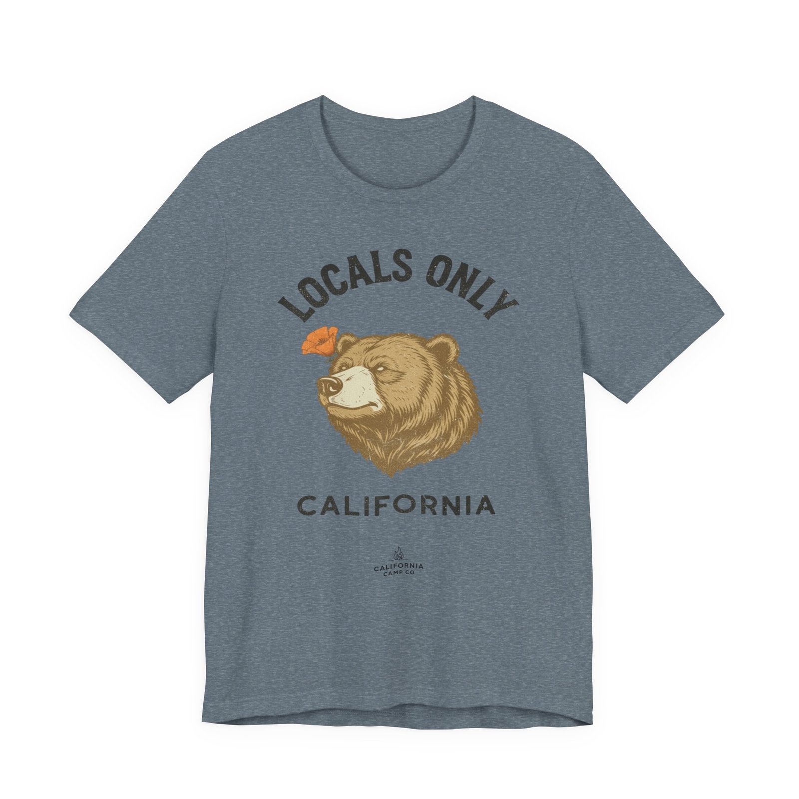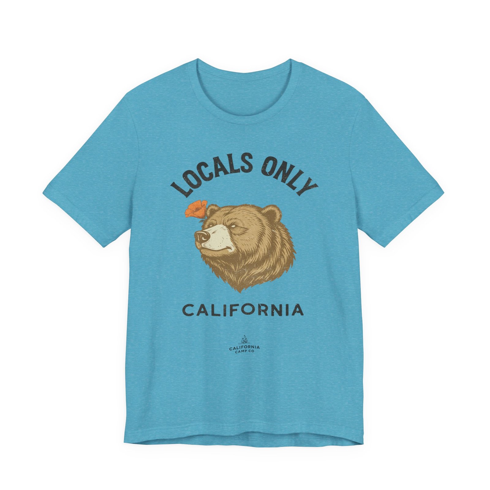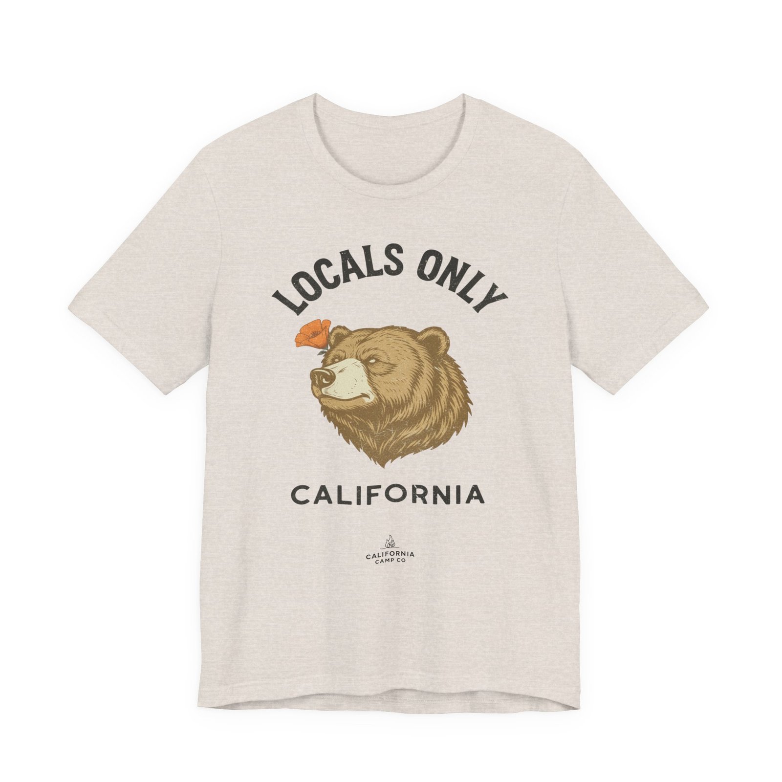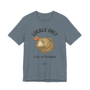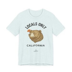A lightweight, everyday tee that feels like a sunny morning on the coast. This soft Bella Canvas jersey carries a vintage-style bear illustration and “LOCALS ONLY / CALIFORNIA” lettering across the chest — a quiet declaration for those who live for coastal drives, canyon hikes, and low-key weekend rituals. The fabric breathes easily and layers under a flannel or over a surf shirt, while the retail fit and crew neckline keep the silhouette clean and wearable. Subtle worn tones in the print give it a lived-in, nostalgic vibe that settles into your rotation fast.
