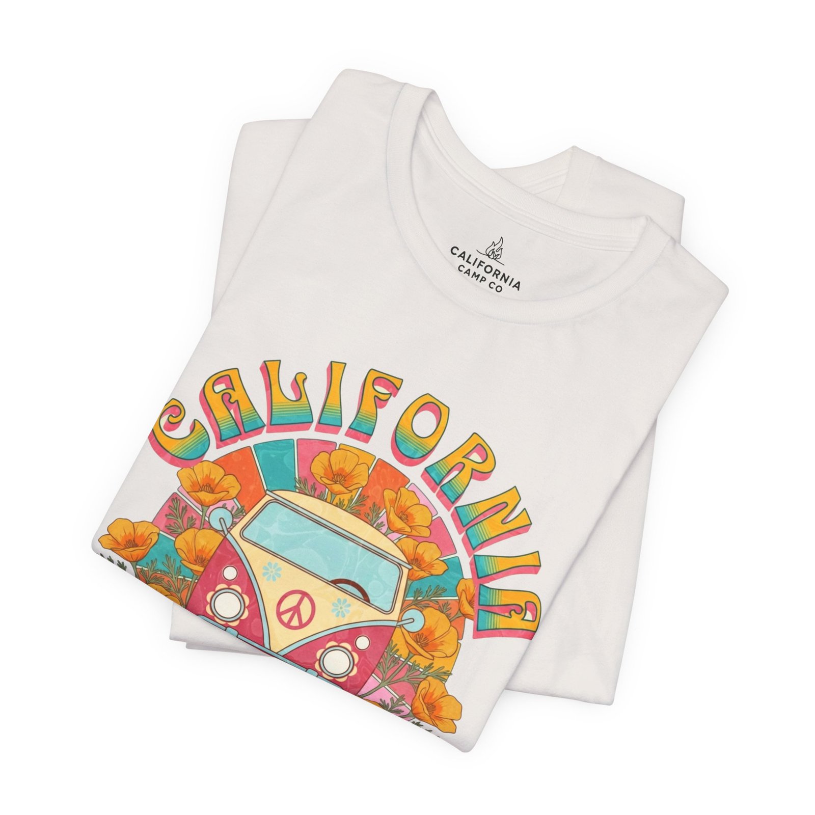 A soft, lightweight tee that carries a sun-soaked, retro California vibe. A cheerful vintage van sits framed by bright poppies and warm hues, with bold “California Love” lettering that feels like a road-trip memory. The crew neck and retail fit make it easy to layer under a jacket or wear on its own during long drives, beach bonfires, or weekend farmer’s market runs. Breathable Airlume combed cotton keeps you cool while the tear-away label and reinforced shoulder tape keep comfort front and center. Wear it when you want a gentle nod to nostalgic free-spirited days and slow, salty afternoons by the coast.