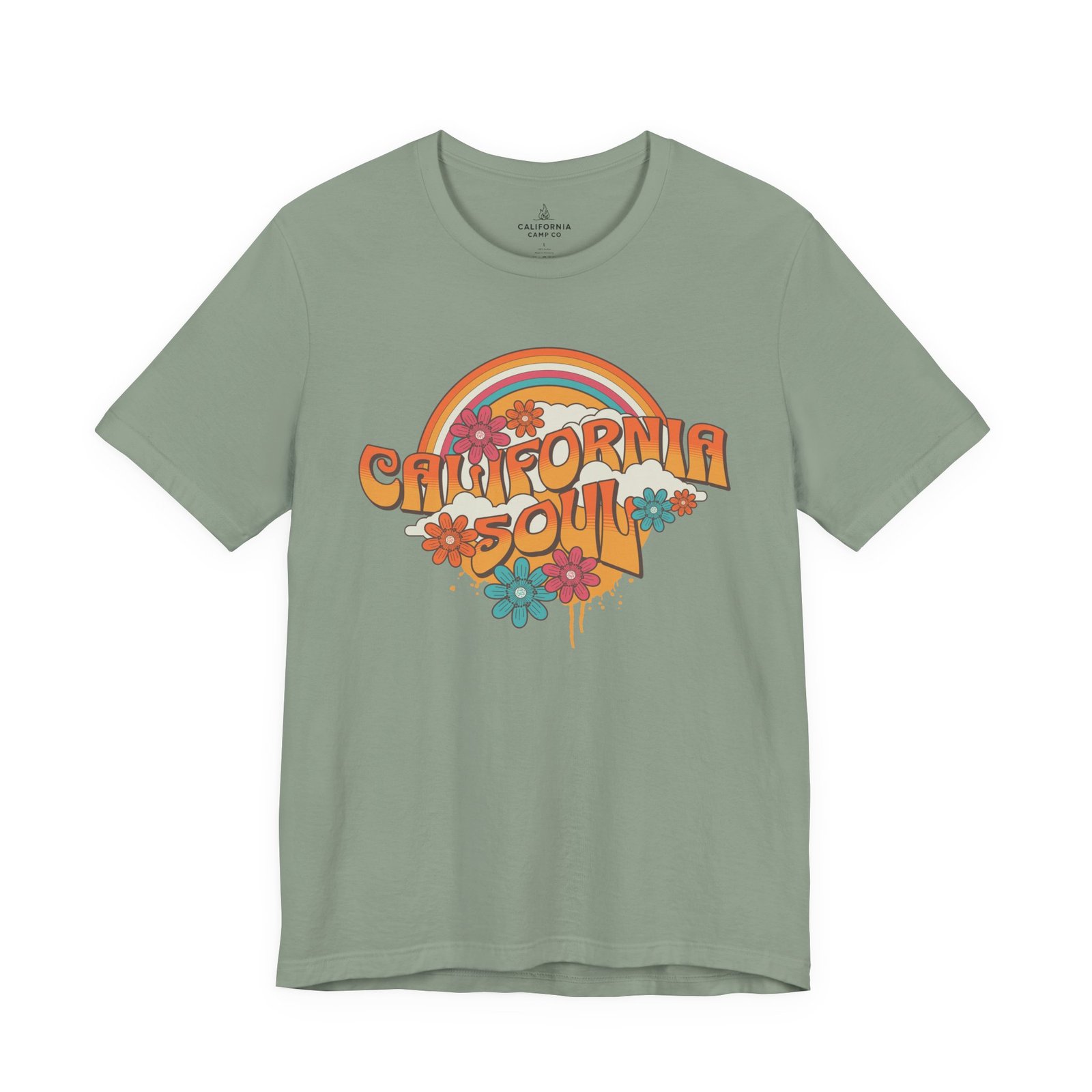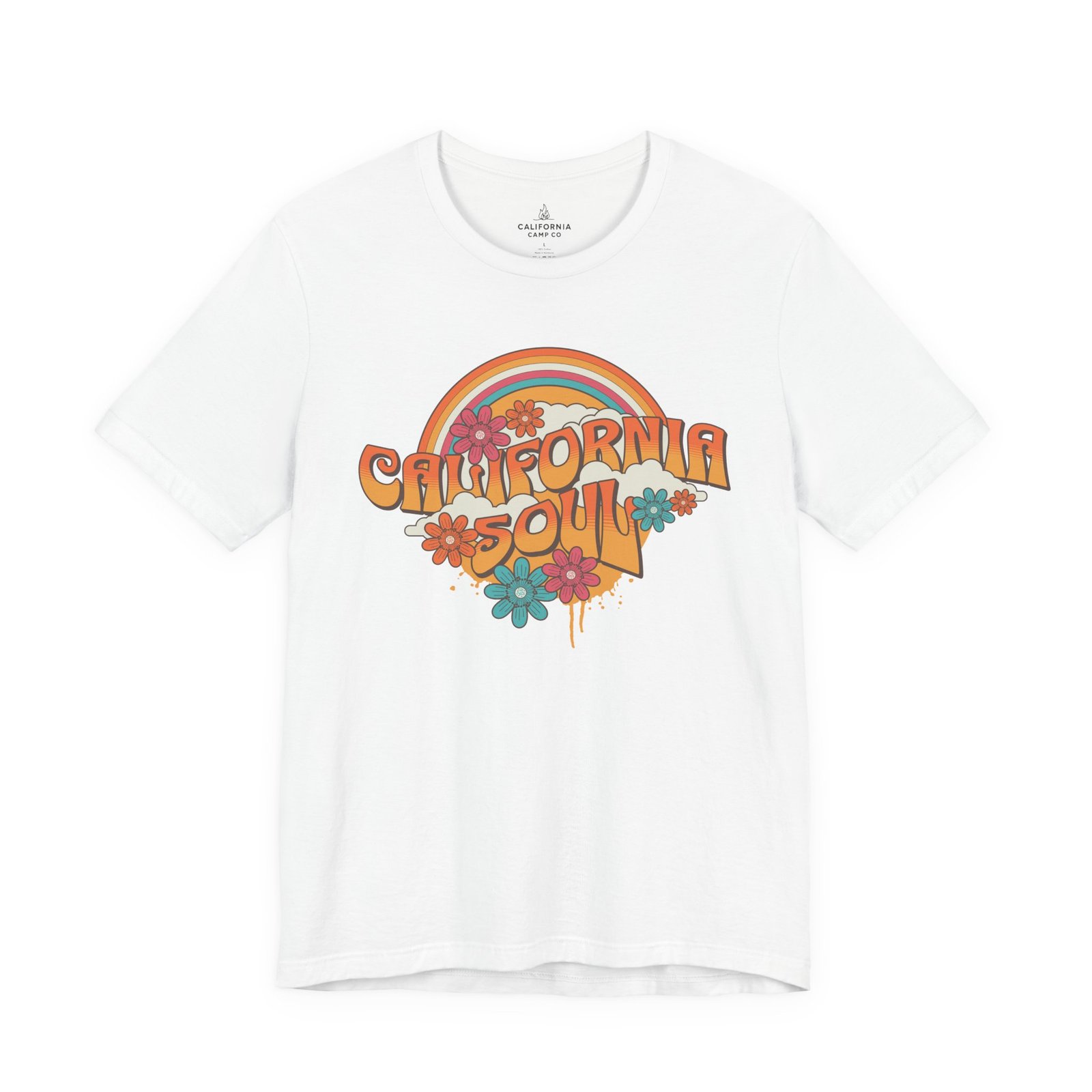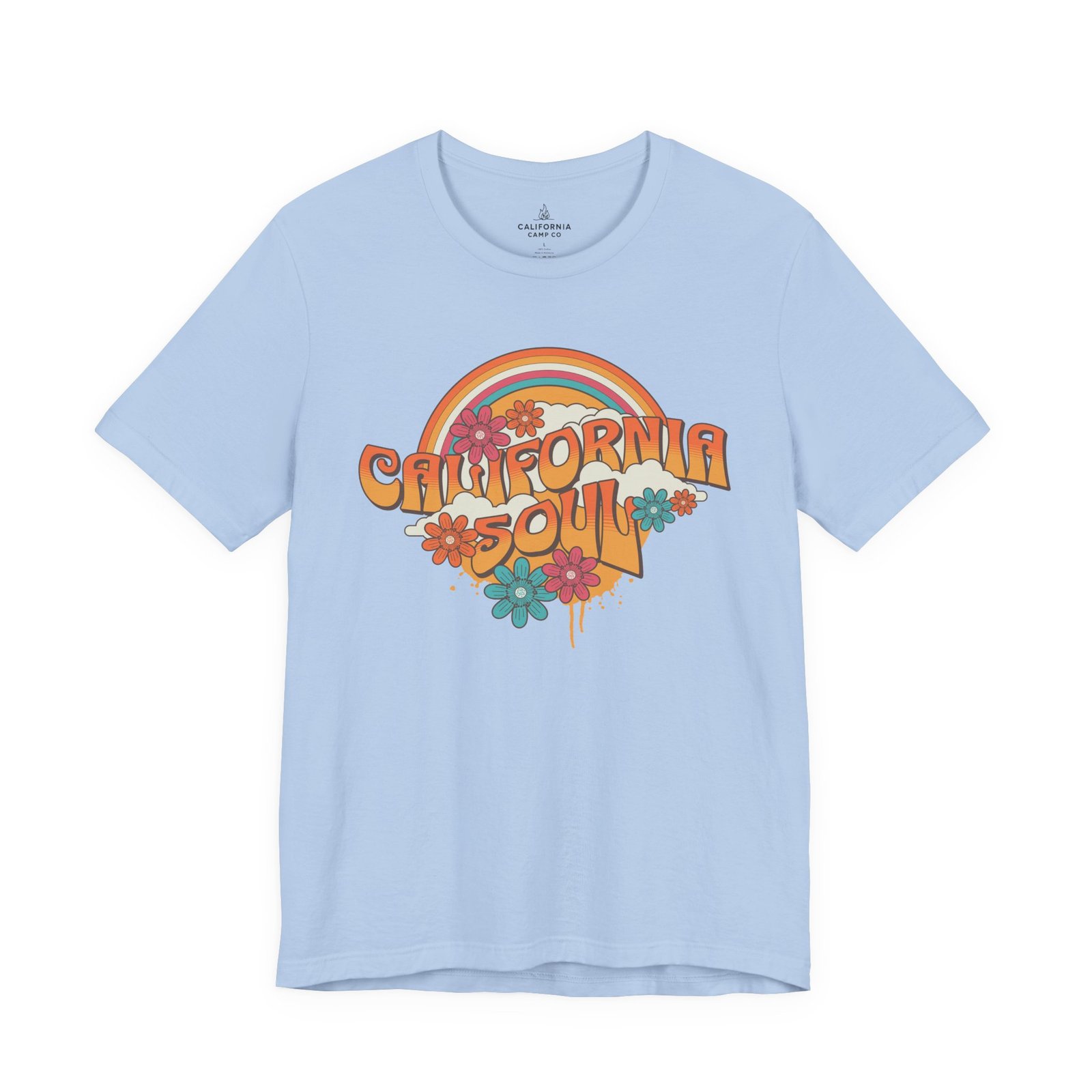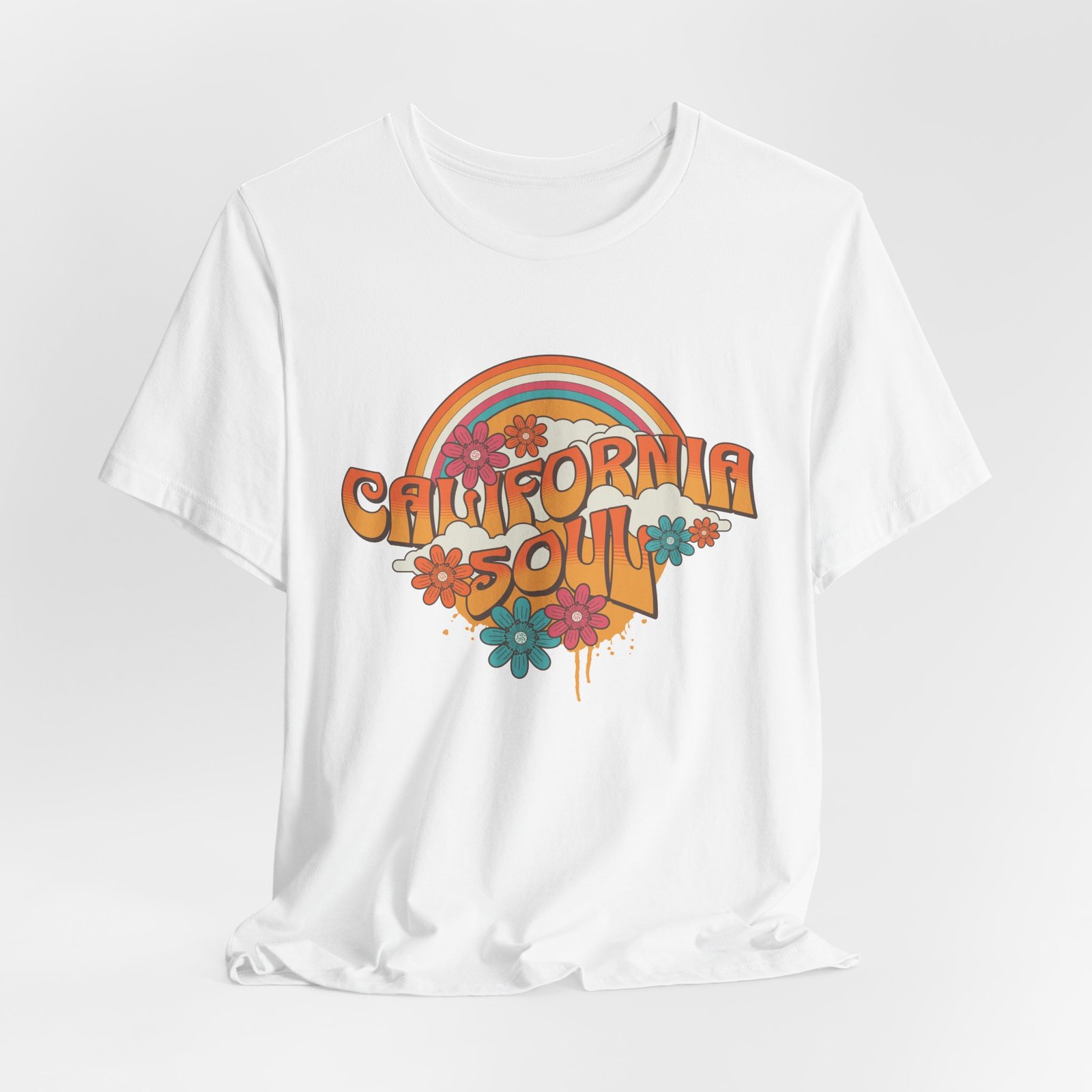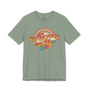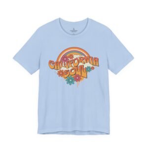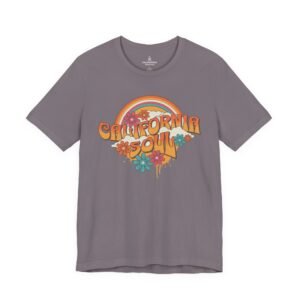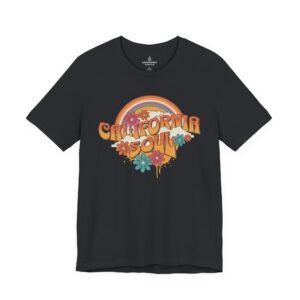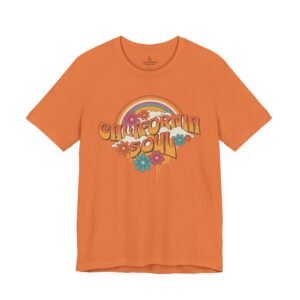 Sun-baked afternoons, ocean breezes, and the easy hum of vintage radio — this tee carries a soft, retro California vibe. The lightweight Airlume combed cotton feels airy against the skin and drapes with a relaxed retail fit that moves from boardwalk strolls to backyard bonfires. The colorful, slightly faded graphic — warm rainbows, groovy lettering, and laid-back florals — reads like a memory you can wear. Small thoughtful details (ribbed knit collar, shoulder tape, side seams and a tear-away label) keep the shirt comfortable and long-lasting, while responsibly made construction gives it a cleaner conscience. Slip it on when you want something breezy, nostalgic, and quietly sunlit.