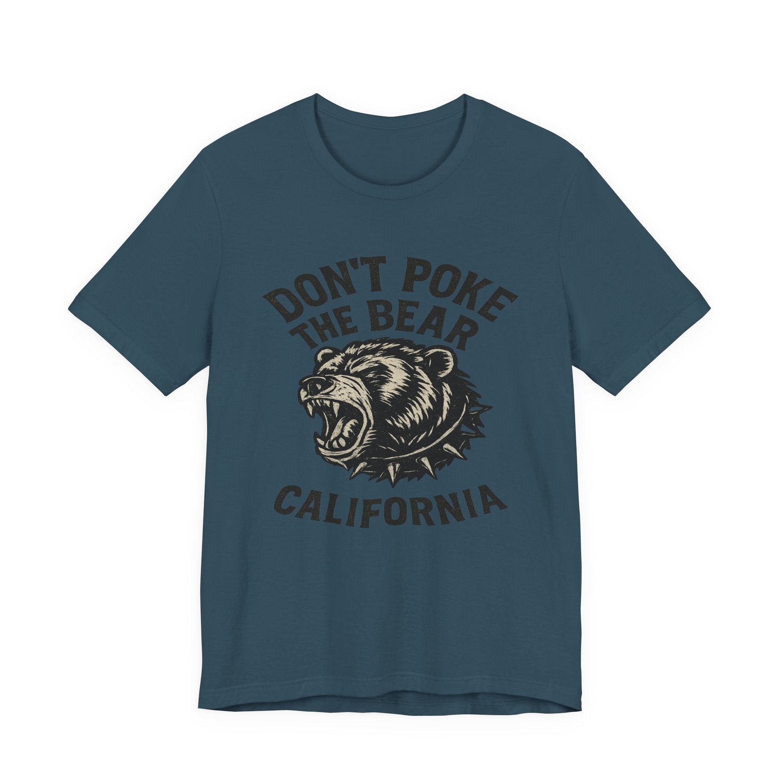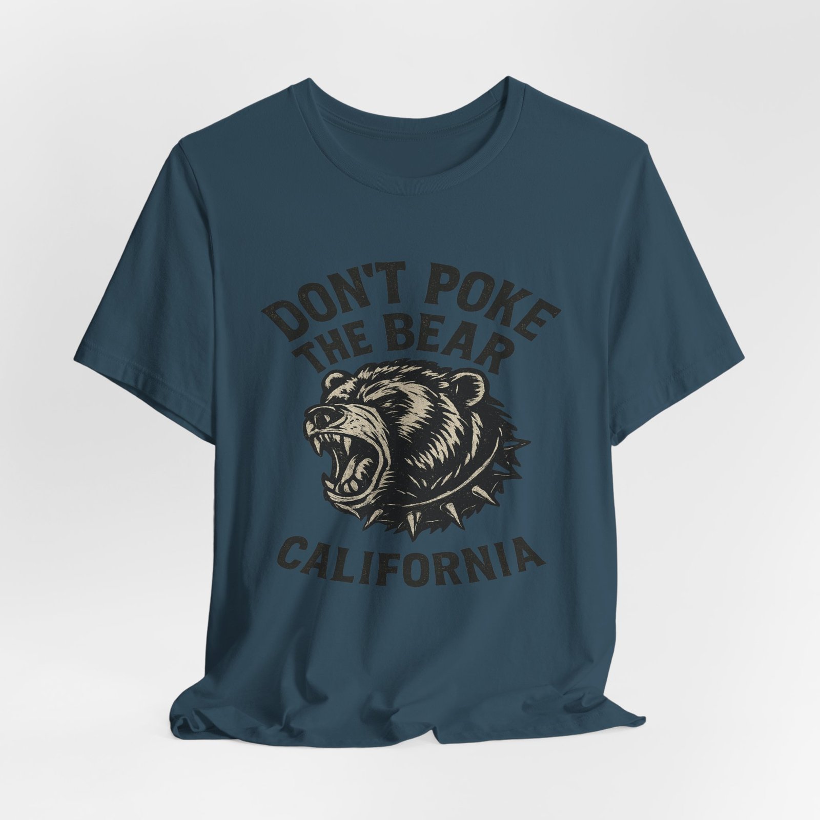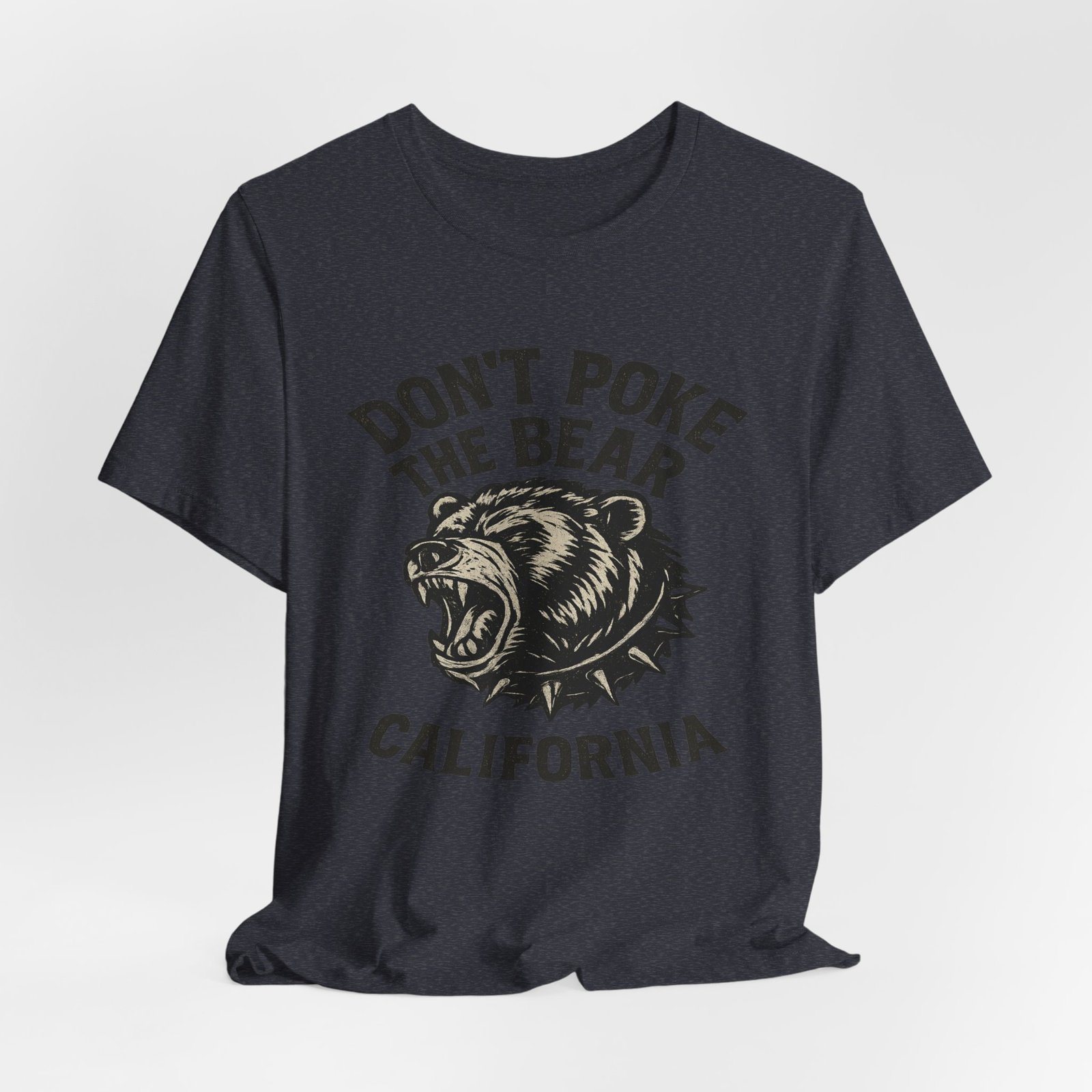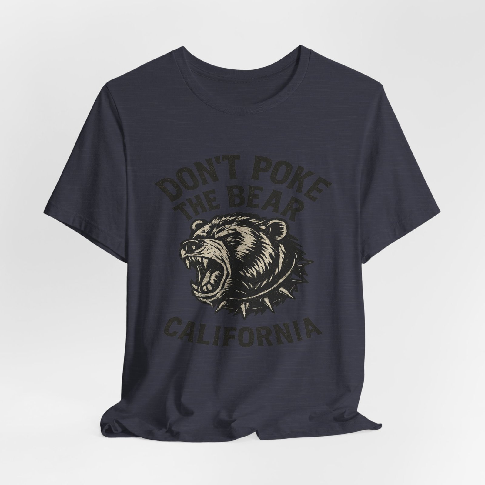 A soft, breathable tee that wears like a trusted companion on weekend drives, hikes into redwood groves, or backyard barbecues. The bold “Don’t Poke The Bear — California” artwork centers on a fierce, vintage-style bear head that reads as both playful and proud. Lightweight Airlume combed cotton feels cool against the skin and layers easily under jackets. Thoughtful construction — side seams, ribbed collar, shoulder tape and a tear-away label — keeps the shape crisp and comfortable after many washes. Ethically made and REACH certified, this shirt carries an outdoorsy attitude with responsible craftsmanship, suited to casual days when you want a little grit and a lot of comfort.