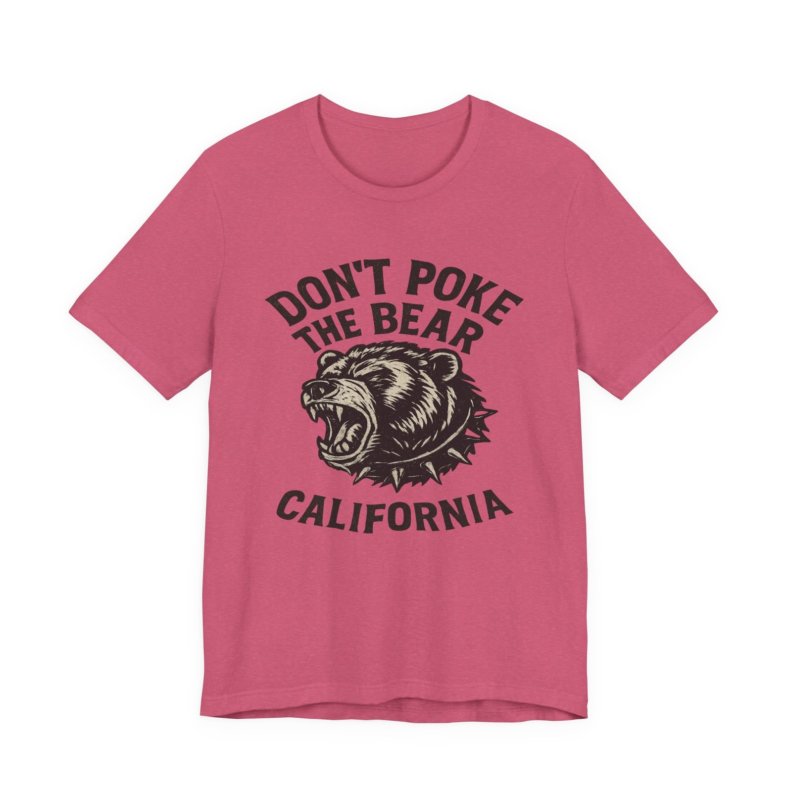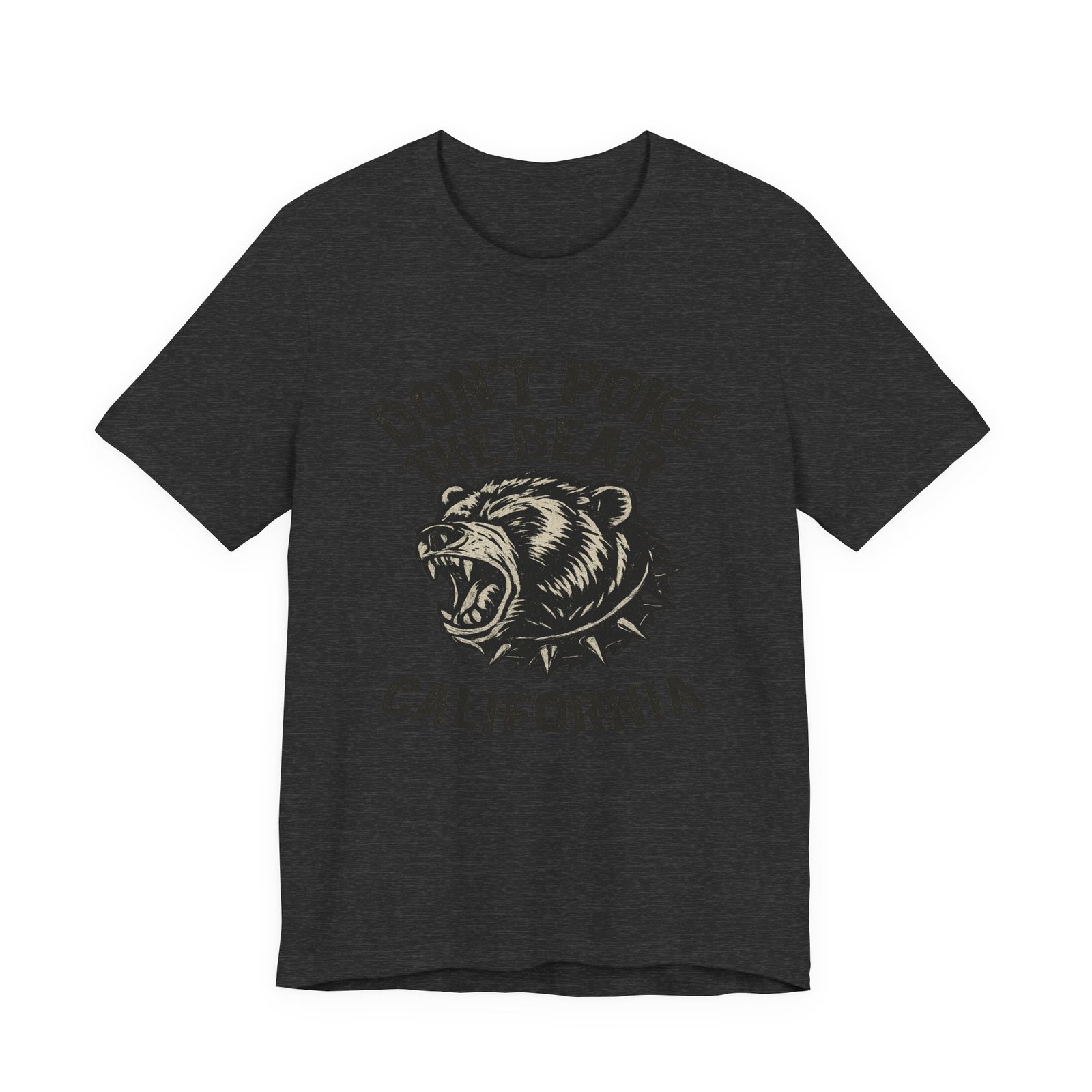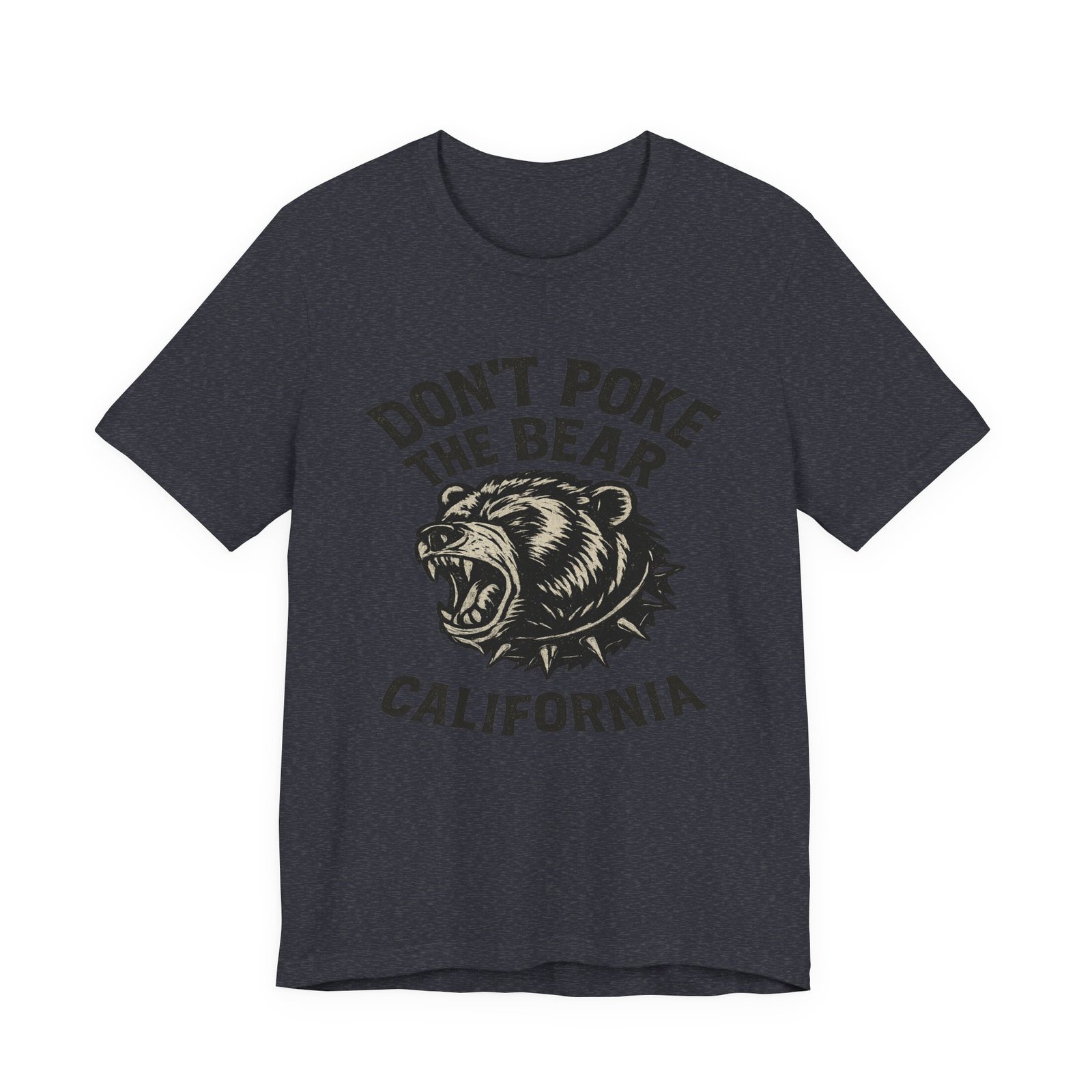 A soft, breathable tee that wears like a trusted companion on weekend drives, hikes into redwood groves, or backyard barbecues. The bold “Don’t Poke The Bear — California” artwork centers on a fierce, vintage-style bear head that reads as both playful and proud. Lightweight Airlume combed cotton feels cool against the skin and layers easily under jackets. Thoughtful construction — side seams, ribbed collar, shoulder tape and a tear-away label — keeps the shape crisp and comfortable after many washes. Ethically made and REACH certified, this shirt carries an outdoorsy attitude with responsible craftsmanship, suited to casual days when you want a little grit and a lot of comfort.