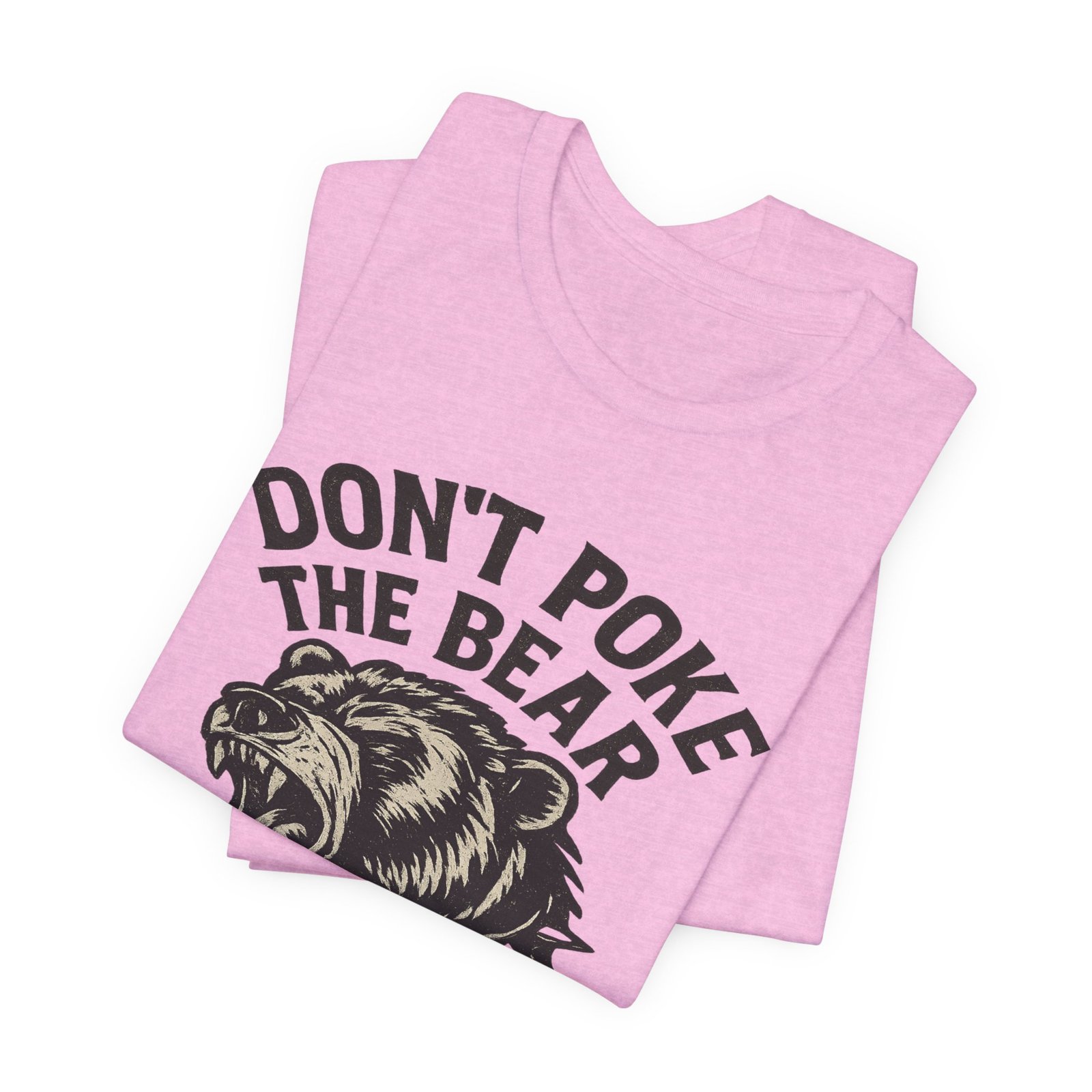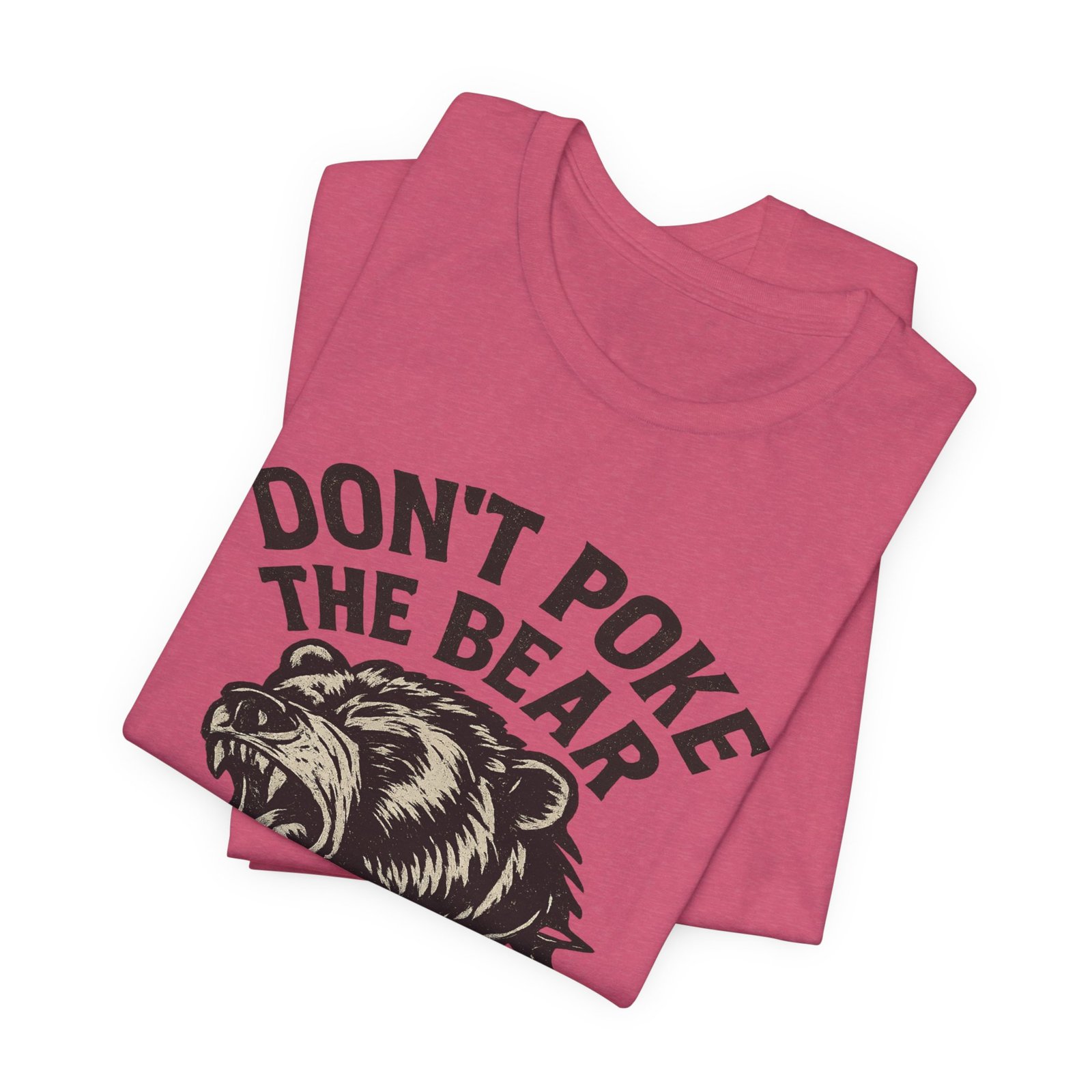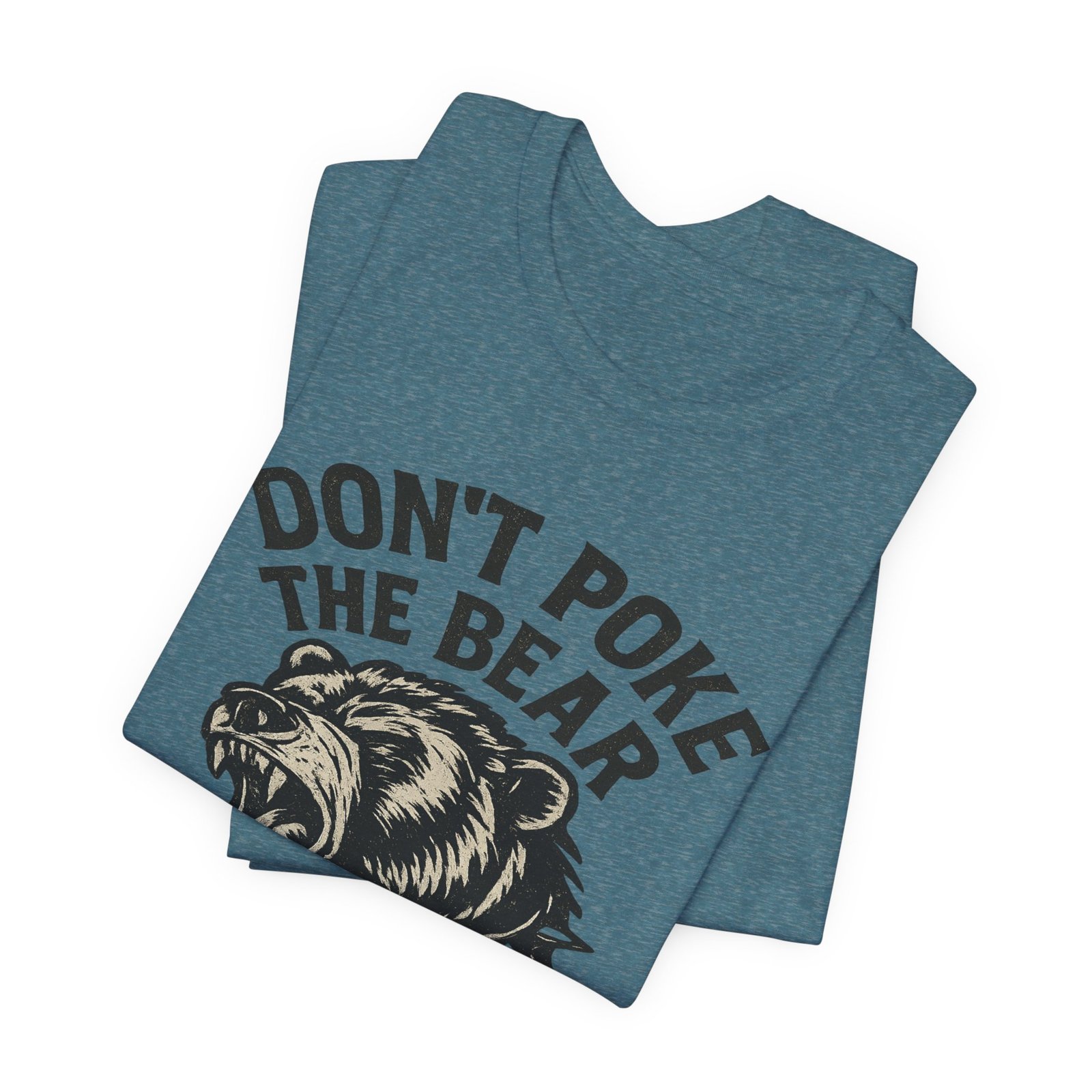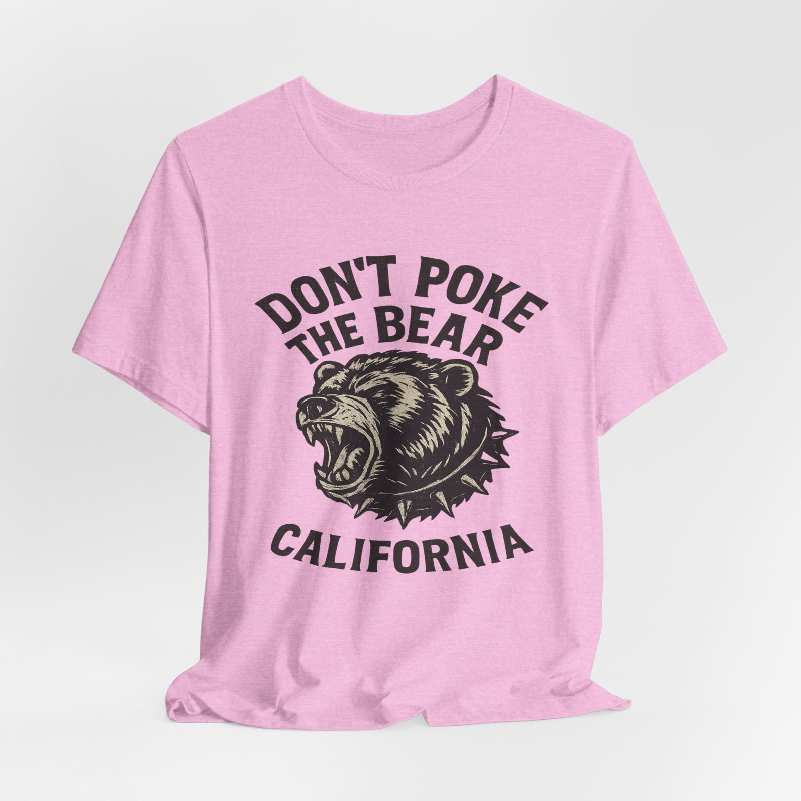 A soft, breathable tee that wears like a trusted companion on weekend drives, hikes into redwood groves, or backyard barbecues. The bold “Don’t Poke The Bear — California” artwork centers on a fierce, vintage-style bear head that reads as both playful and proud. Lightweight Airlume combed cotton feels cool against the skin and layers easily under jackets. Thoughtful construction — side seams, ribbed collar, shoulder tape and a tear-away label — keeps the shape crisp and comfortable after many washes. Ethically made and REACH certified, this shirt carries an outdoorsy attitude with responsible craftsmanship, suited to casual days when you want a little grit and a lot of comfort.