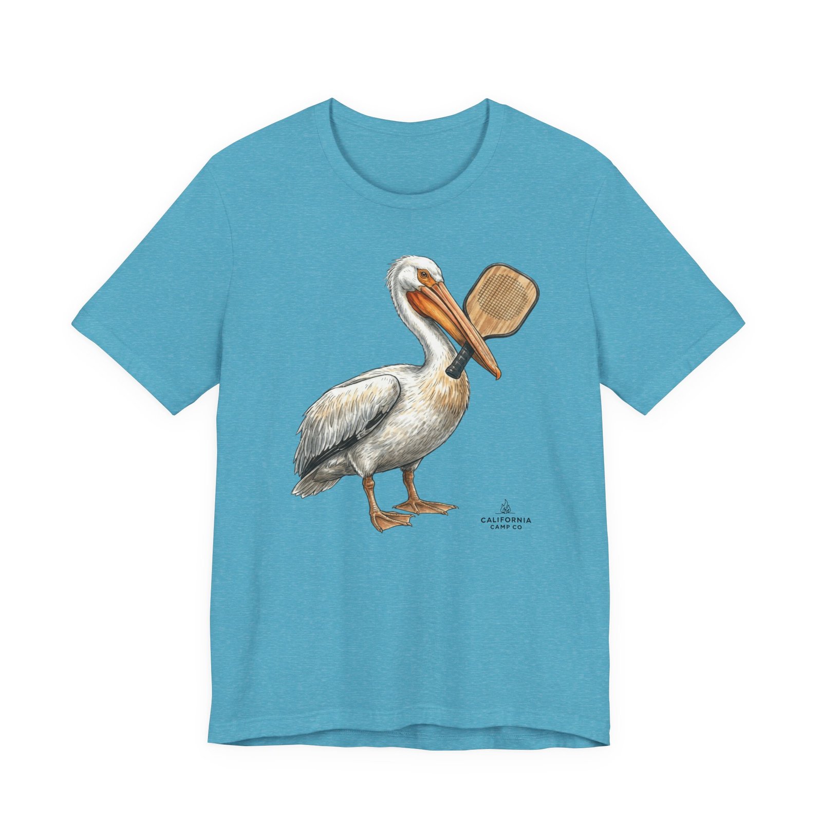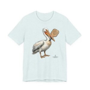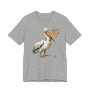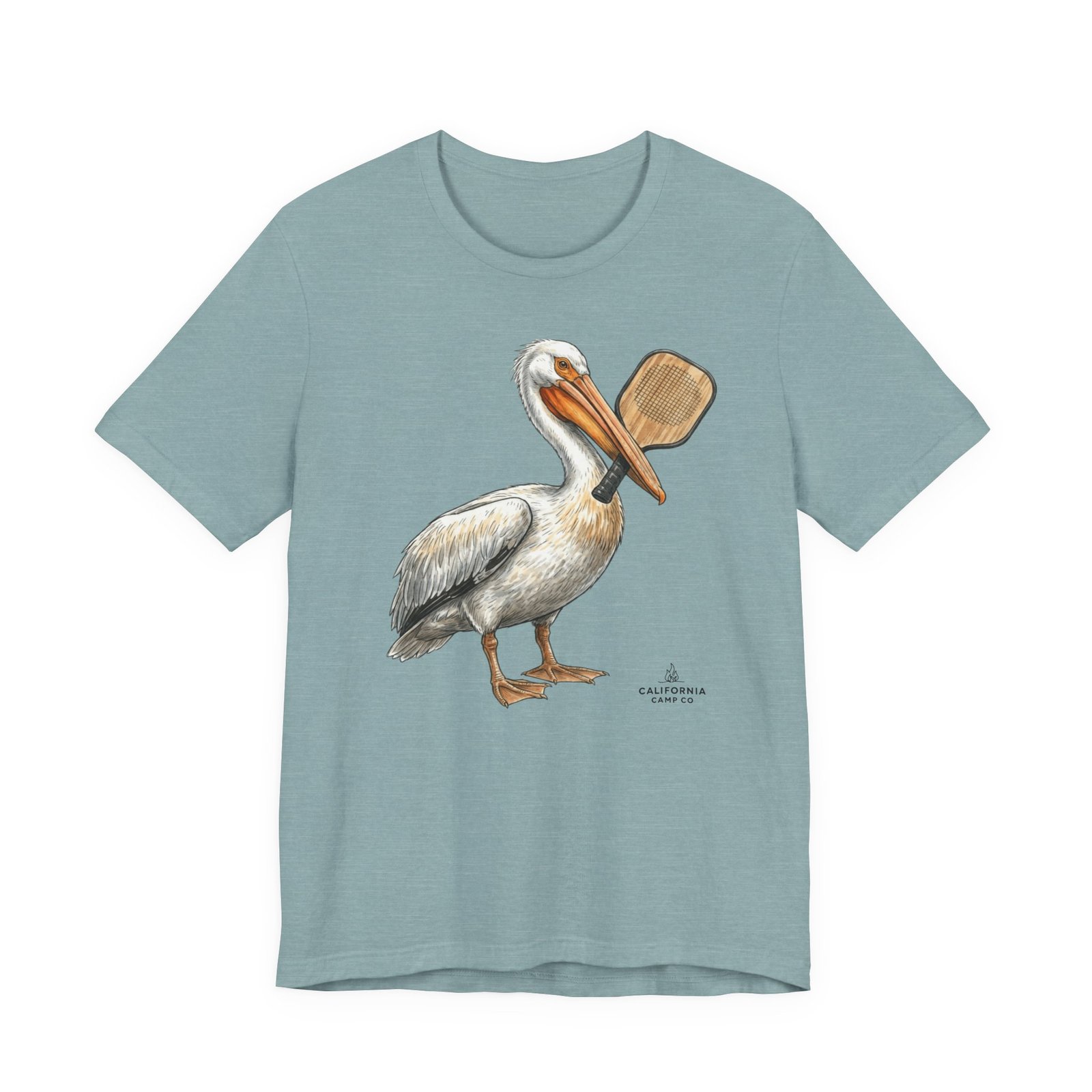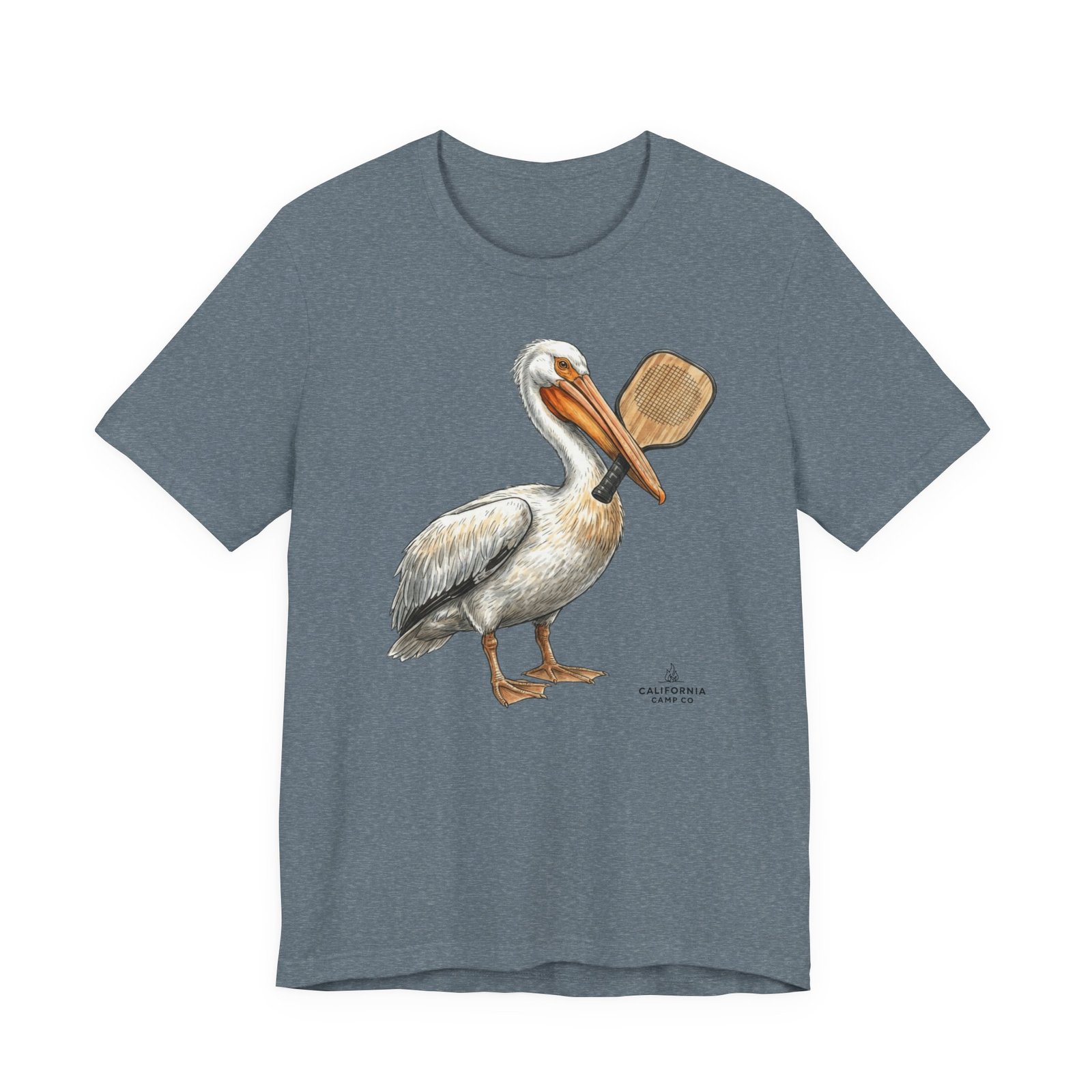 Soft, breathable tee with a hand-drawn pelican holding a pickleball paddle — it feels like a slow morning on the bay. Lightweight Airlume combed cotton drapes easily over layers and keeps you cool while exploring tide pools or grabbing coffee after a sunrise paddle. The subtle, painterly illustration sits on a neutral heather ground so the art reads like a quiet souvenir rather than loud branding. Wear it with rolled sleeves and sun-faded denim for salty, lived-in style that speaks to people who love coastal life and simple, outdoor rhythms.