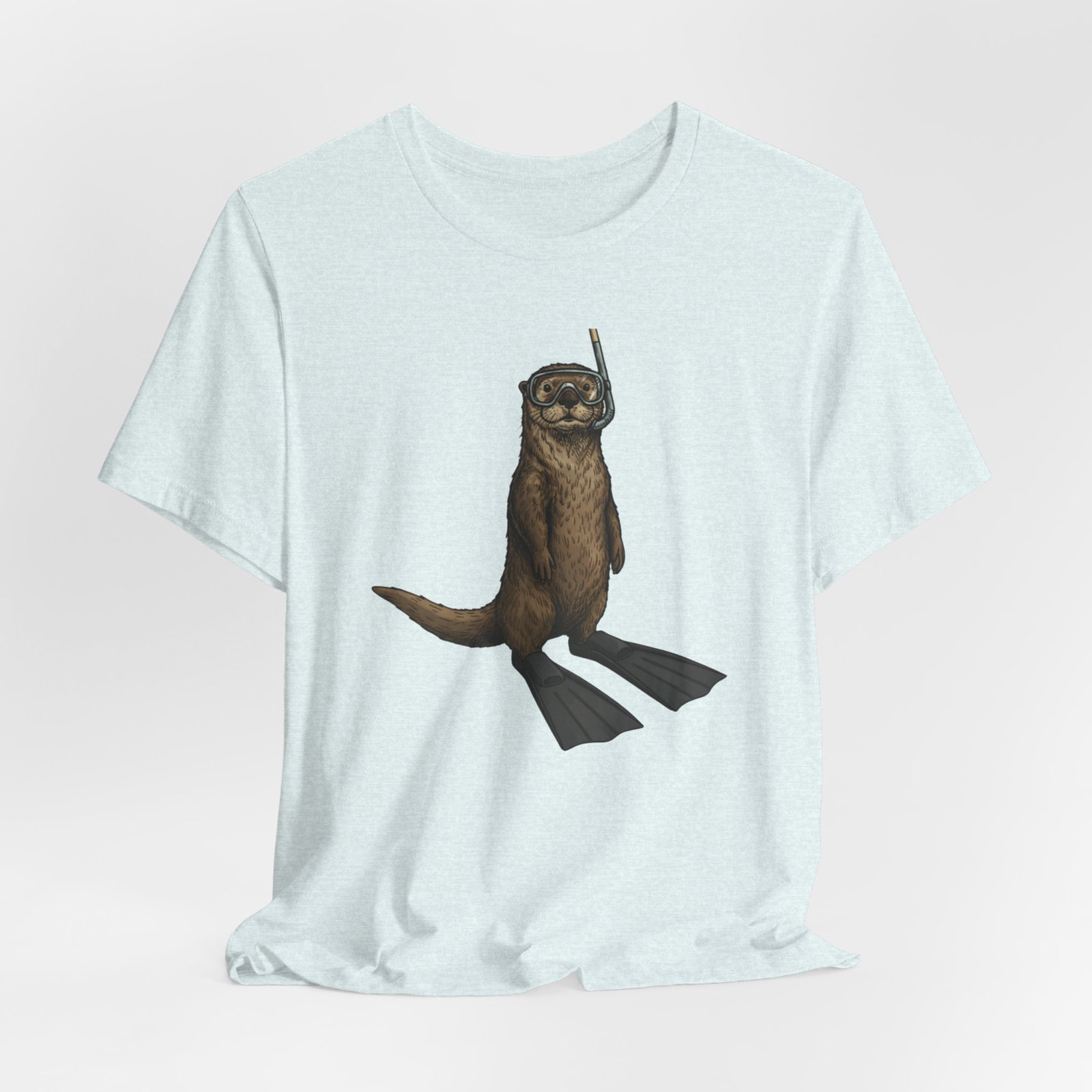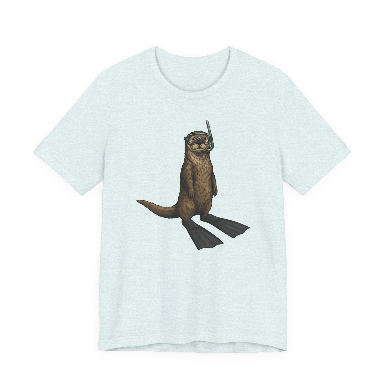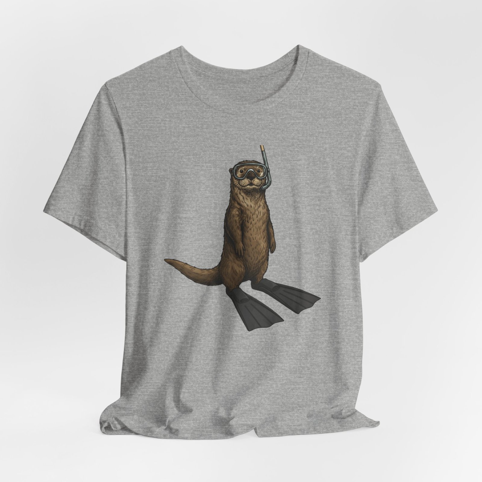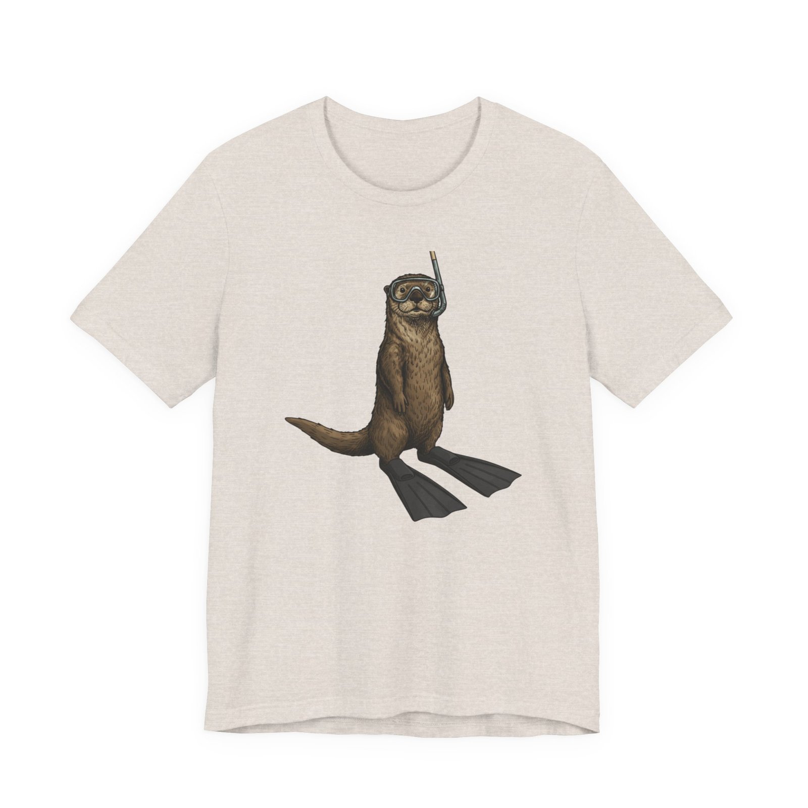 Light, breathable, and soft — this tee brings a wink of seaside fun to everyday wear. A playful otter stands ready with snorkel and fins, rendered in detailed, natural tones that sit beautifully on a neutral, heathered canvas. The retail fit and crew neckline give a neat, effortless silhouette whether you’re layered under a jacket or worn alone on warm days. Thoughtfully made from Airlume combed and ring-spun cotton, the shirt feels gentle against skin and holds its shape thanks to side seams, a ribbed knit collar, and reinforced shoulder tape. Subtle, durable printing keeps the artwork crisp through wear, and a tear-away label keeps the back of the neck comfortable. This tee matches casual coastal days, outdoor chases, and moments when you want a lighthearted, nature-inspired touch to your outfit.
