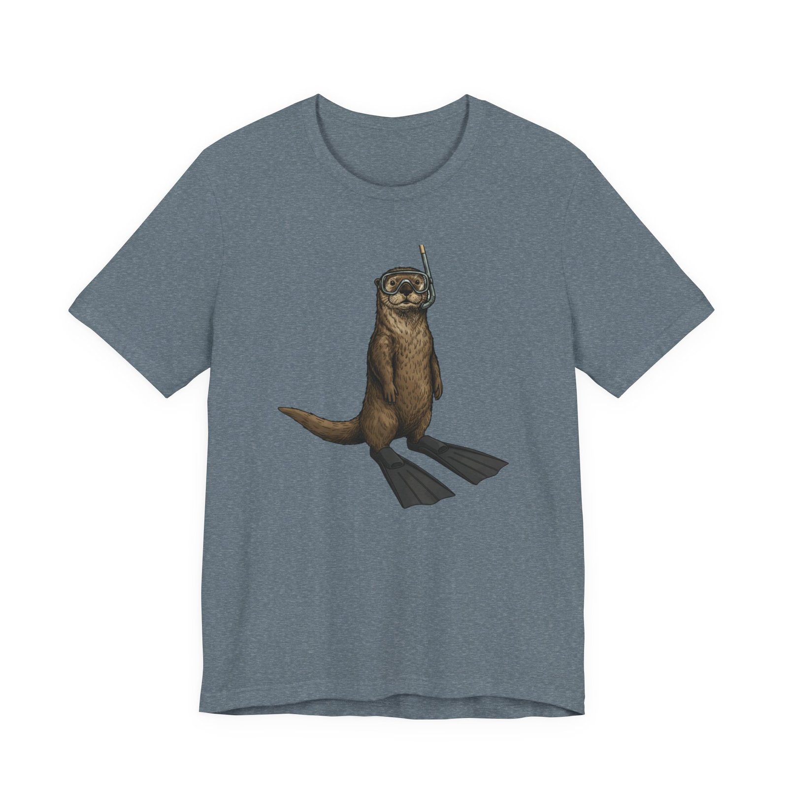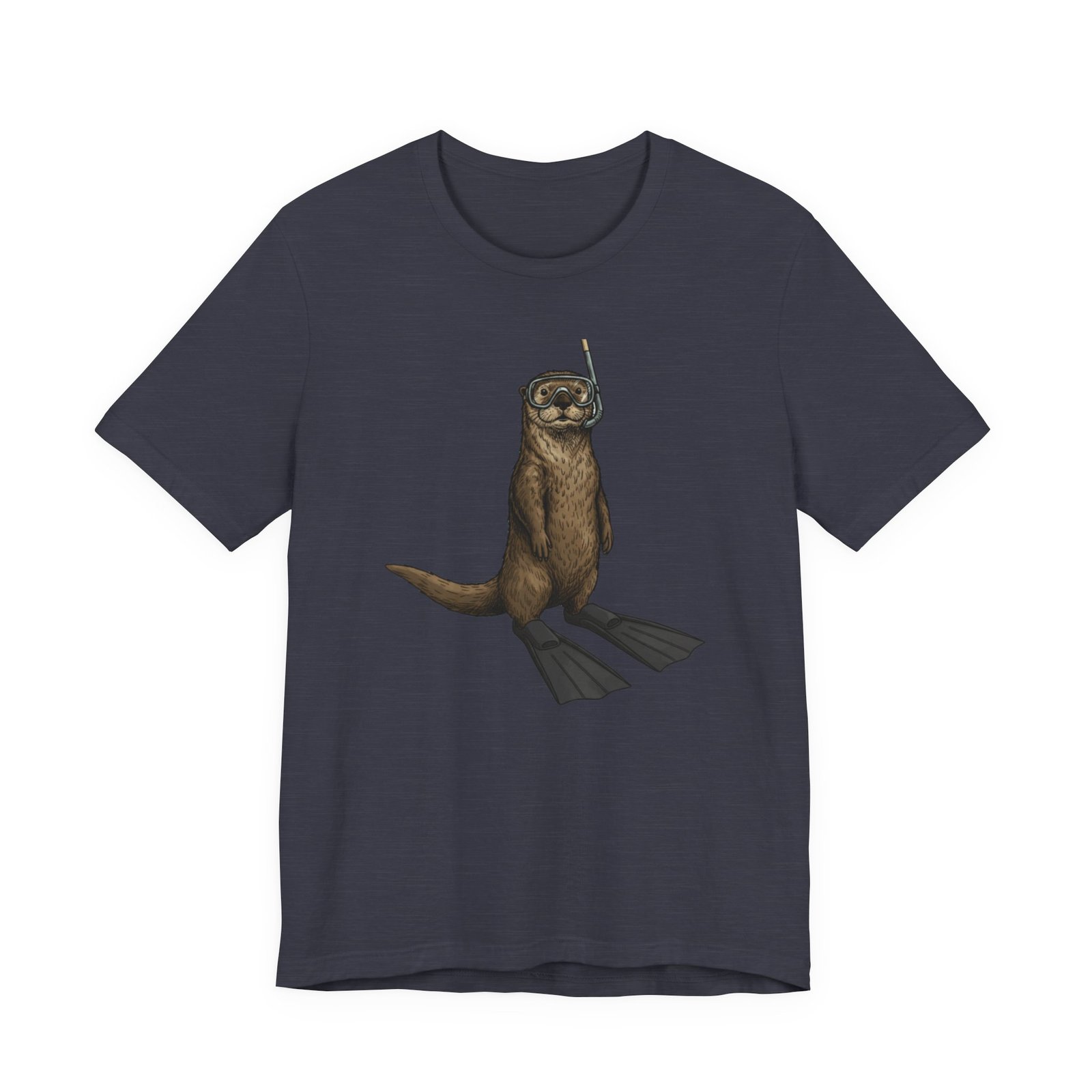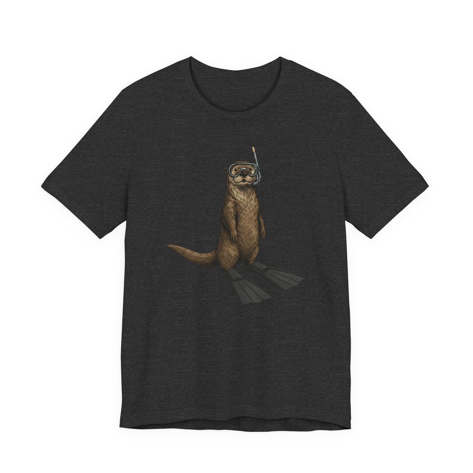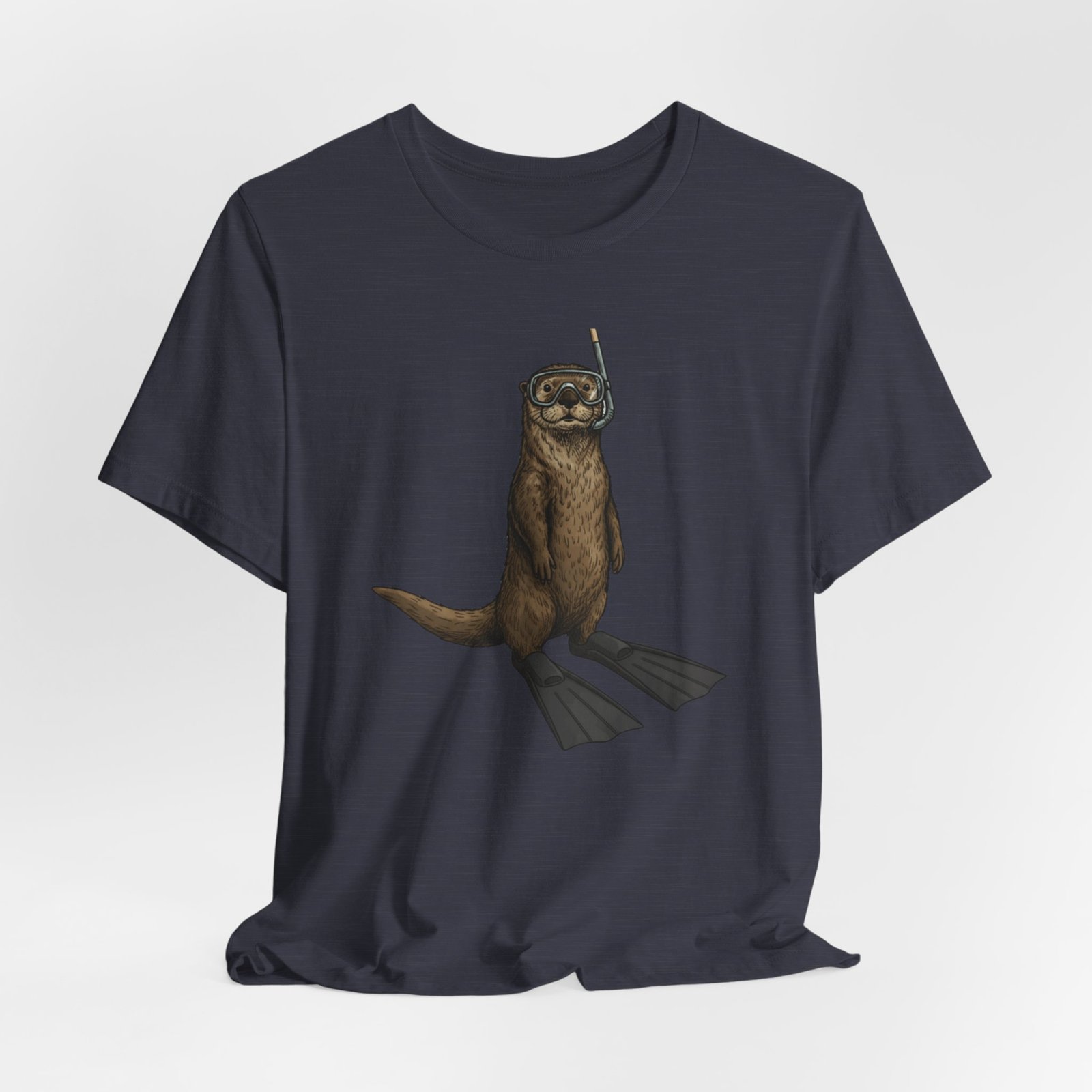 Light, breathable, and soft — this tee brings a wink of seaside fun to everyday wear. A playful otter stands ready with snorkel and fins, rendered in detailed, natural tones that sit beautifully on a neutral, heathered canvas. The retail fit and crew neckline give a neat, effortless silhouette whether you’re layered under a jacket or worn alone on warm days. Thoughtfully made from Airlume combed and ring-spun cotton, the shirt feels gentle against skin and holds its shape thanks to side seams, a ribbed knit collar, and reinforced shoulder tape. Subtle, durable printing keeps the artwork crisp through wear, and a tear-away label keeps the back of the neck comfortable. This tee matches casual coastal days, outdoor chases, and moments when you want a lighthearted, nature-inspired touch to your outfit.