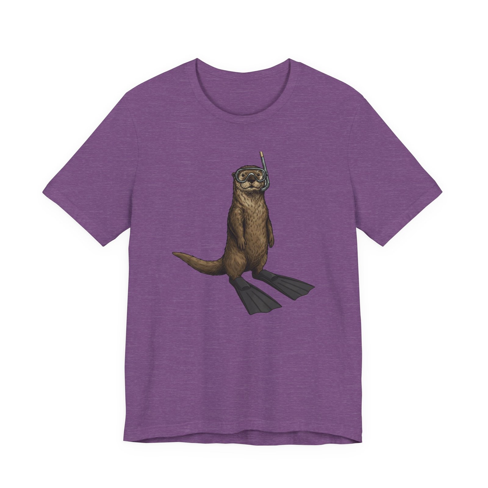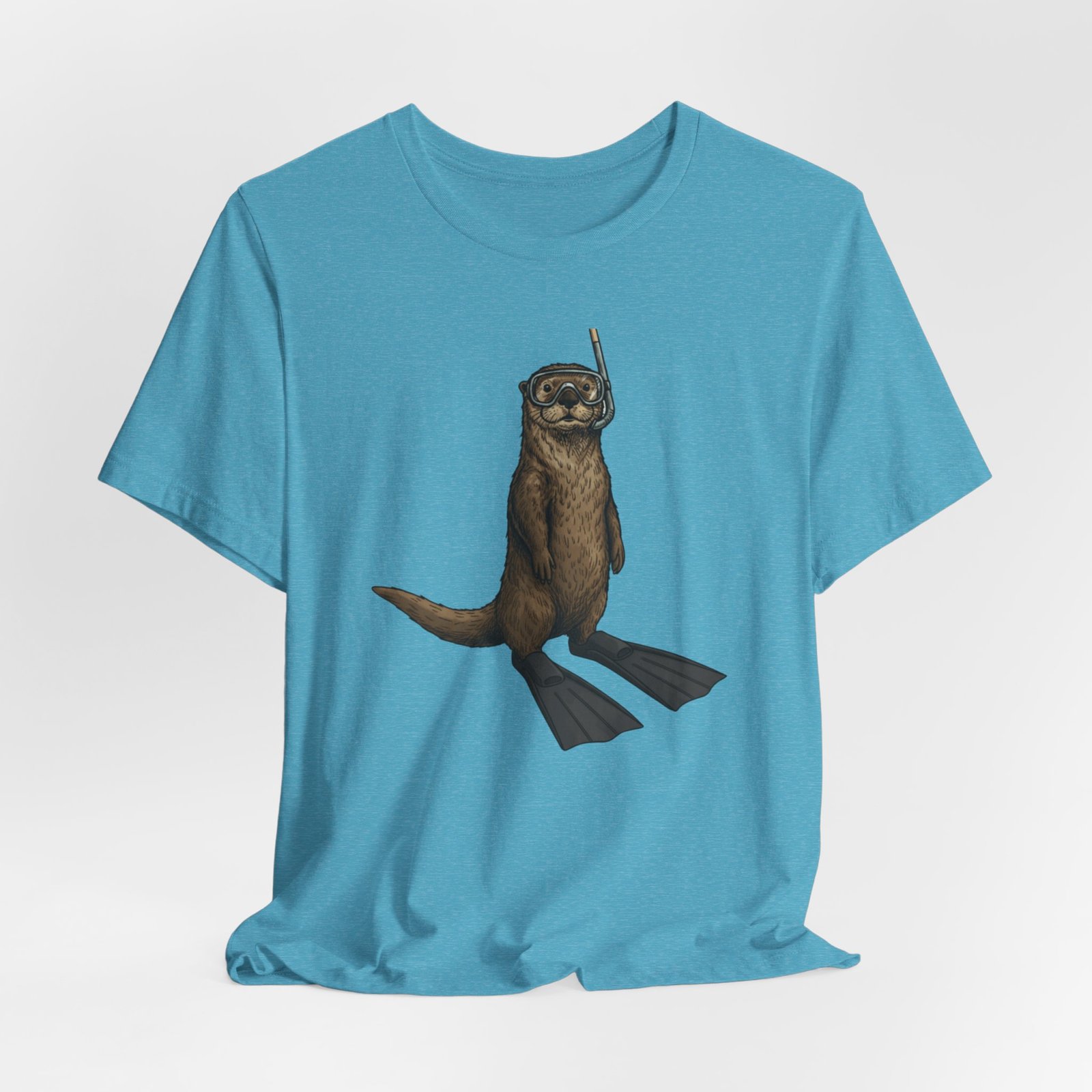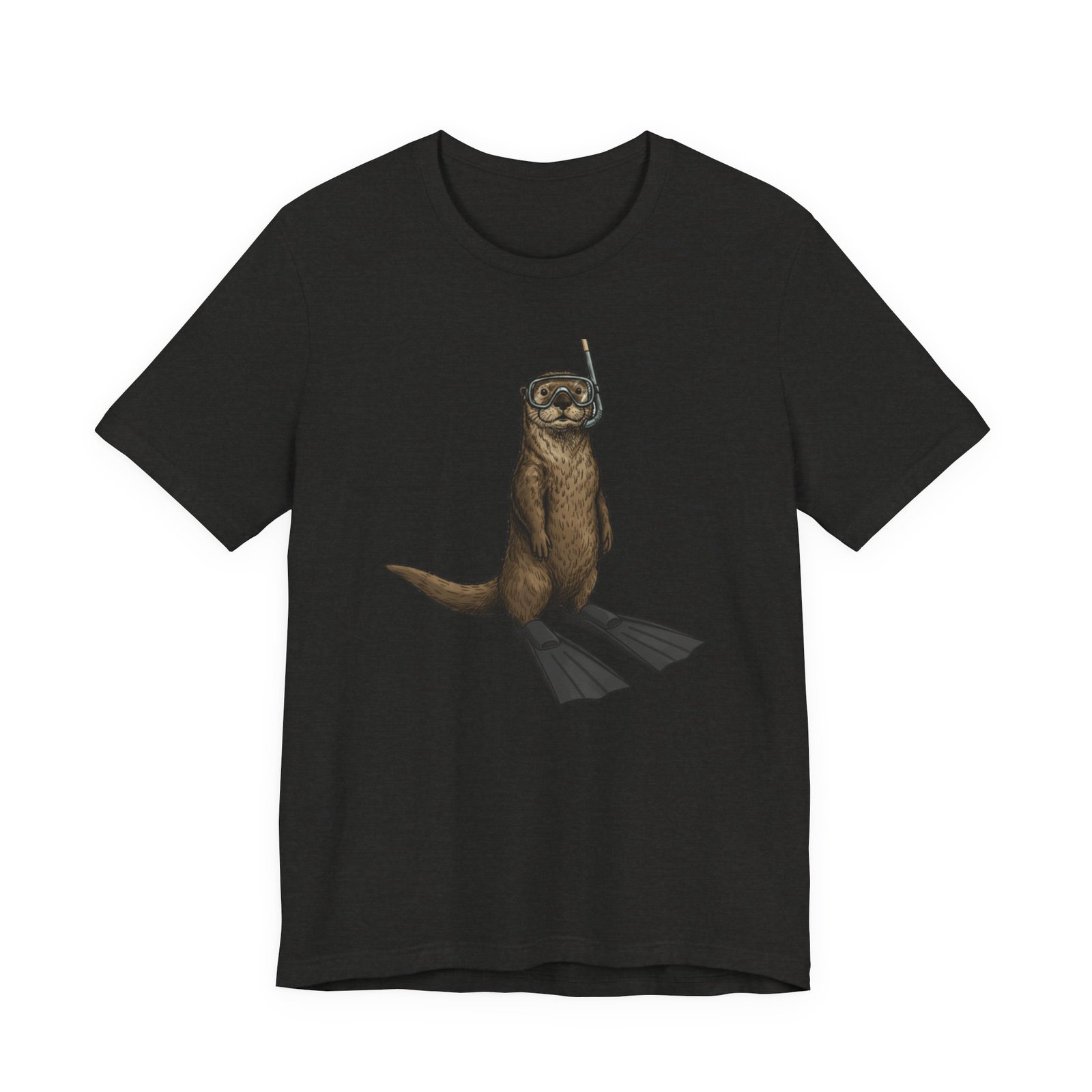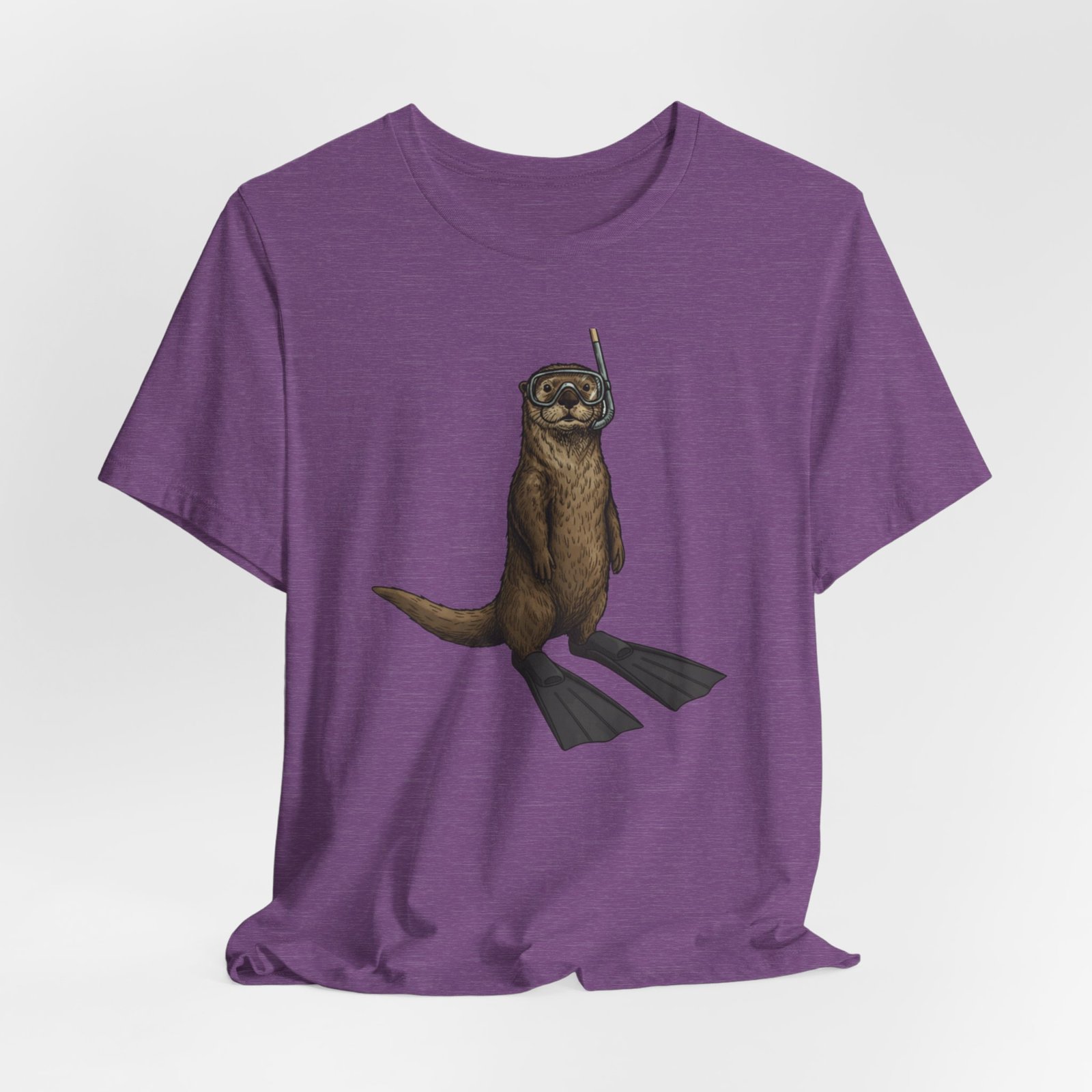 Light, breathable, and soft — this tee brings a wink of seaside fun to everyday wear. A playful otter stands ready with snorkel and fins, rendered in detailed, natural tones that sit beautifully on a neutral, heathered canvas. The retail fit and crew neckline give a neat, effortless silhouette whether you’re layered under a jacket or worn alone on warm days. Thoughtfully made from Airlume combed and ring-spun cotton, the shirt feels gentle against skin and holds its shape thanks to side seams, a ribbed knit collar, and reinforced shoulder tape. Subtle, durable printing keeps the artwork crisp through wear, and a tear-away label keeps the back of the neck comfortable. This tee matches casual coastal days, outdoor chases, and moments when you want a lighthearted, nature-inspired touch to your outfit.