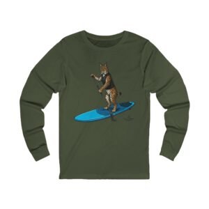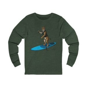 Light, breathable, and ready for slow mornings on the water — this long sleeve tee carries a playful spirit. A confident wildcat stands upright on a blue paddleboard, oar in paw, captured in crisp, hand-drawn detail that feels both whimsical and adventurous. The fabric is soft and slightly airy, so it layers easily on cool dawns or late-summer evenings. Wear it while gathering your gear, walking the shoreline, or sharing coffee on a damp dock. The relaxed retail fit and tear-away label keep the experience comfortable and unfussy, while the ribbed collar and shoulder tape hold the shape wash after wash. It’s for people who love a little personality in practical pieces — those who value quiet mornings, outdoor rhythms, and clothing that moves with them.
