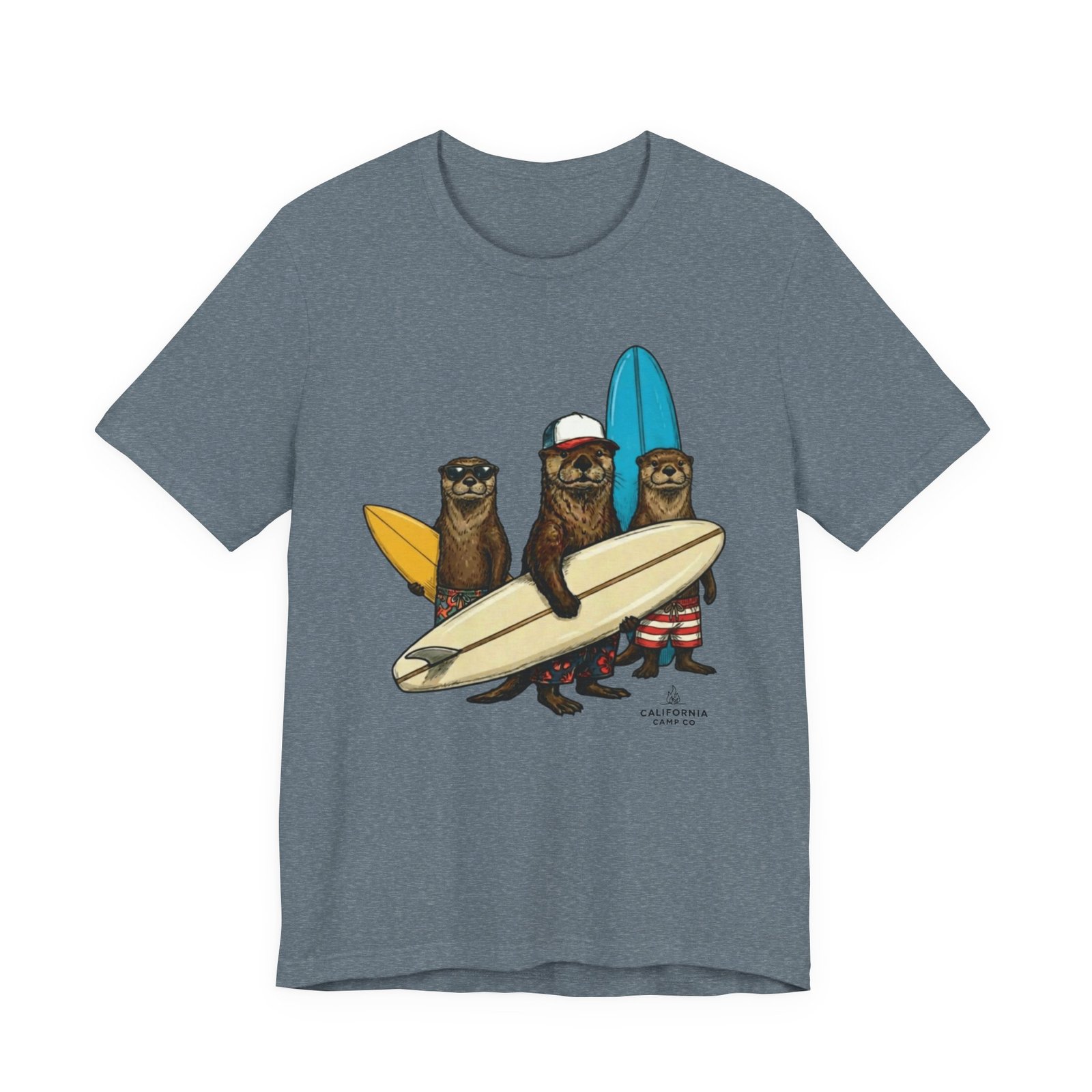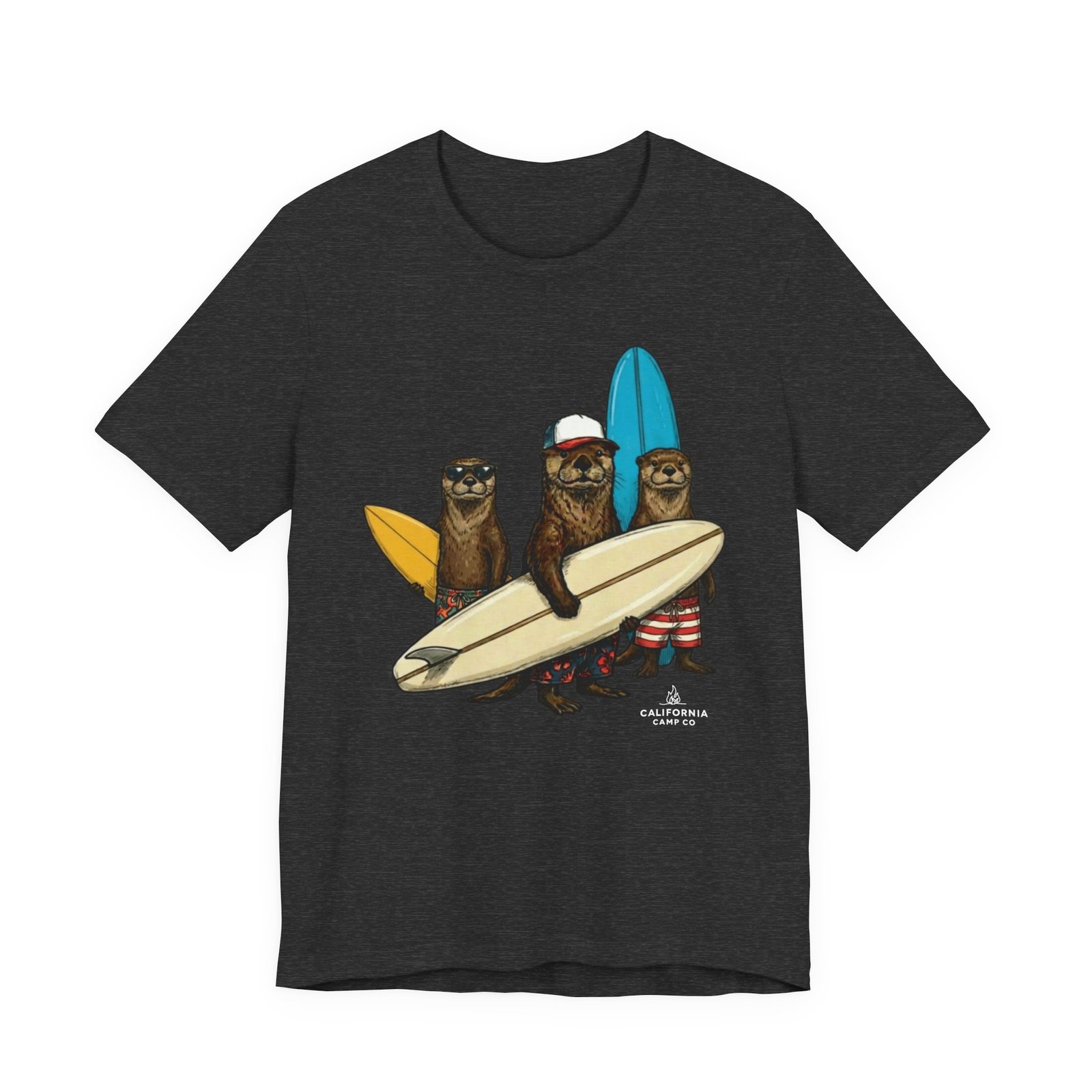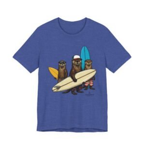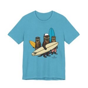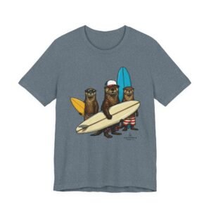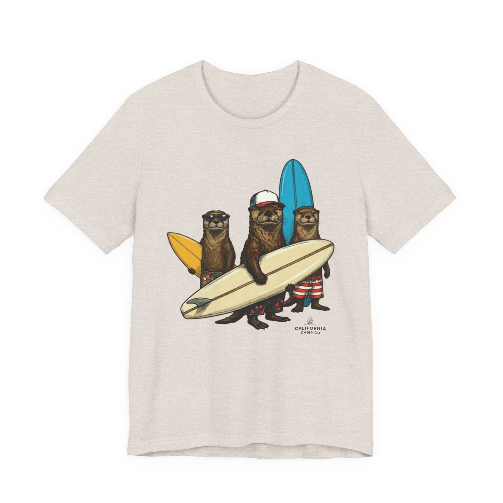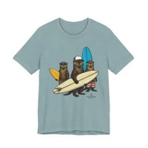 Light, soft, and quietly confident — this tee brings laid-back beach energy with a wink. Three sun-weathered otters stand shoulder-to-shoulder, each holding a scuffed surfboard ready for the next swell. The shirt’s airy feel and retail crew neckline make it easy to wear all day: grabbing coffee before dawn, walking the sand at low tide, or stretching after a surf session. It wears like a favorite you’ve had for years, with details that keep it honest — durable side seams and ribbed collar that hold shape, shoulder tape for comfort, and a tear-away label so nothing rubs while you paddle out. Ethically made from premium Airlume combed cotton and produced through mindful manufacturing, this tee keeps things simple, playful, and built to last.