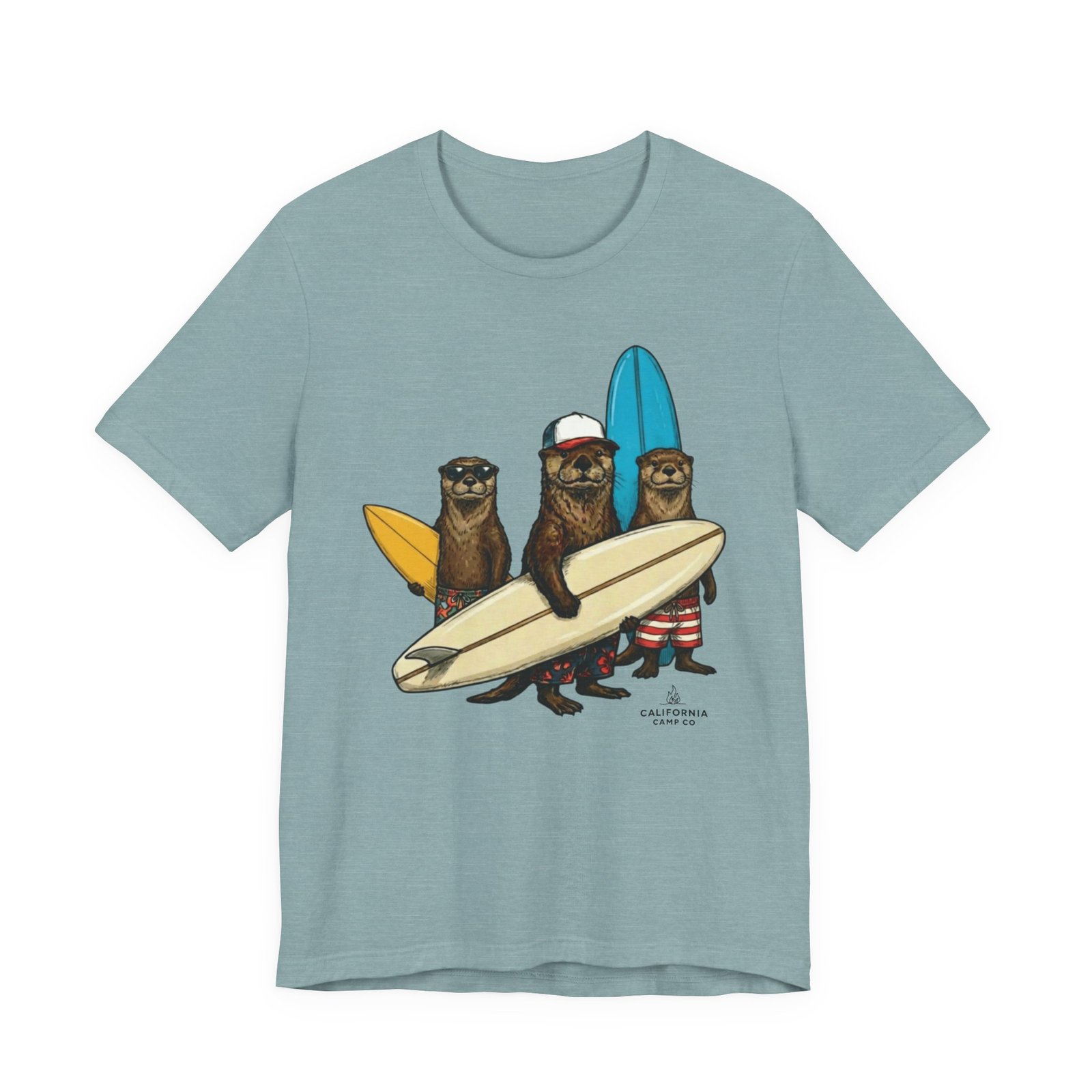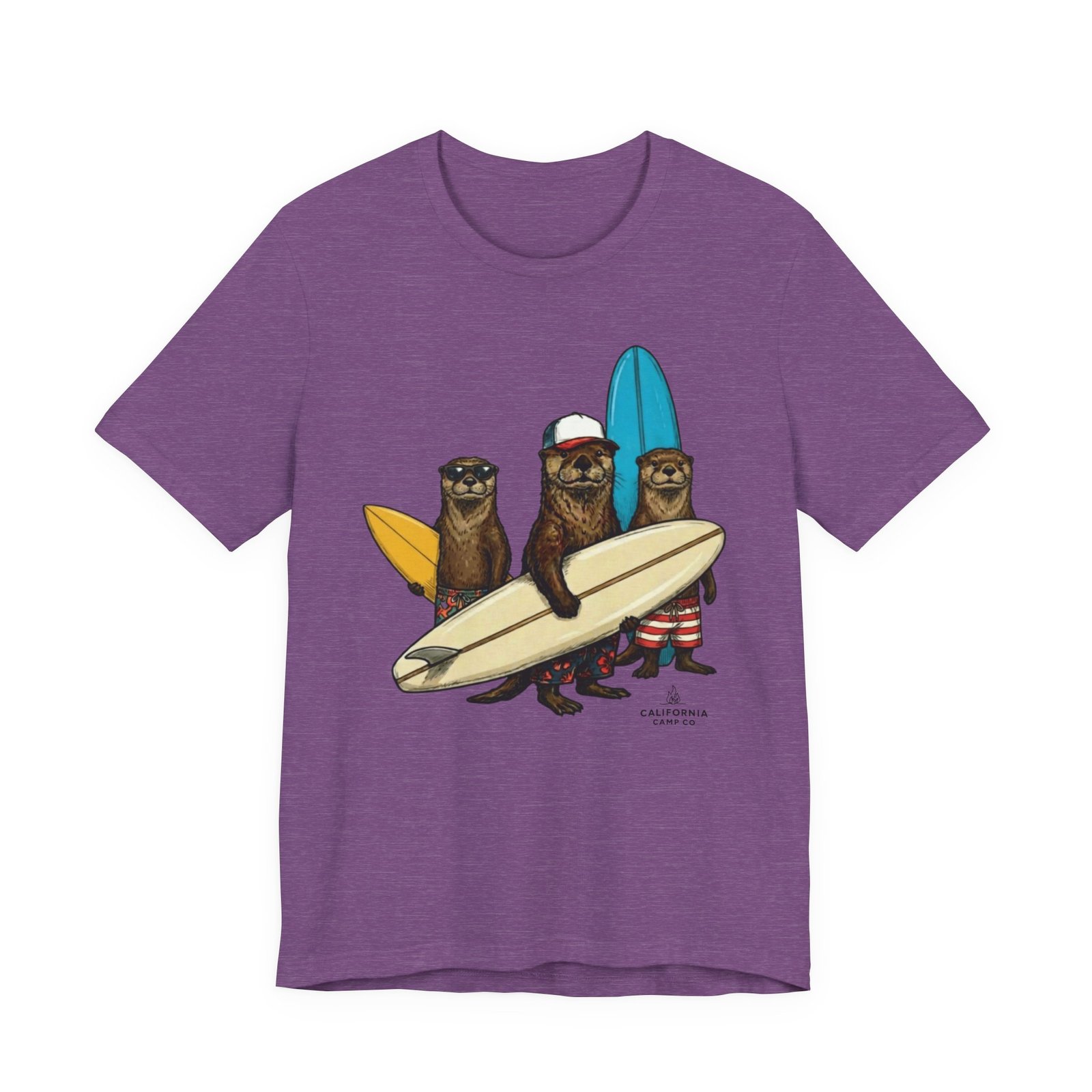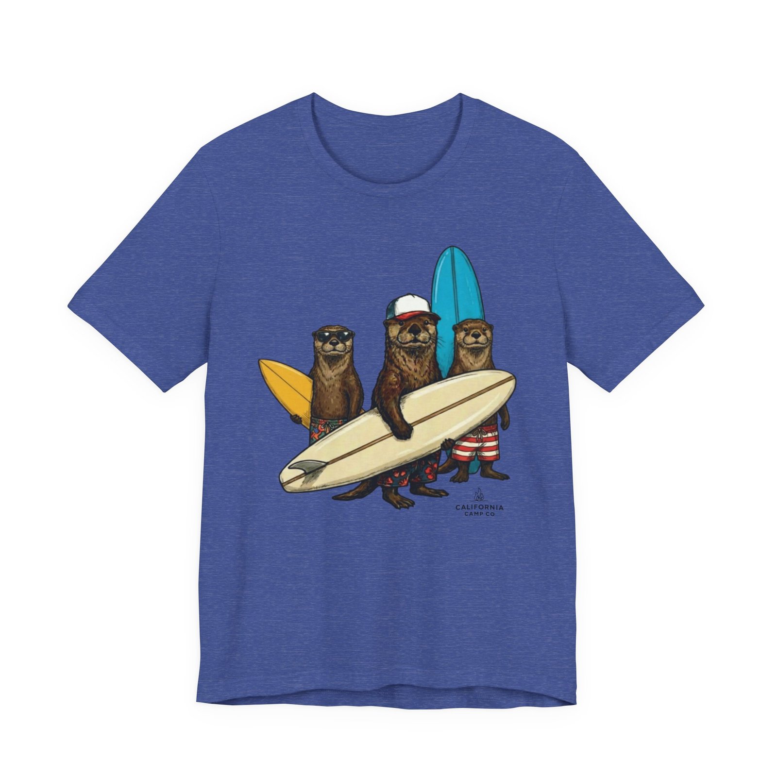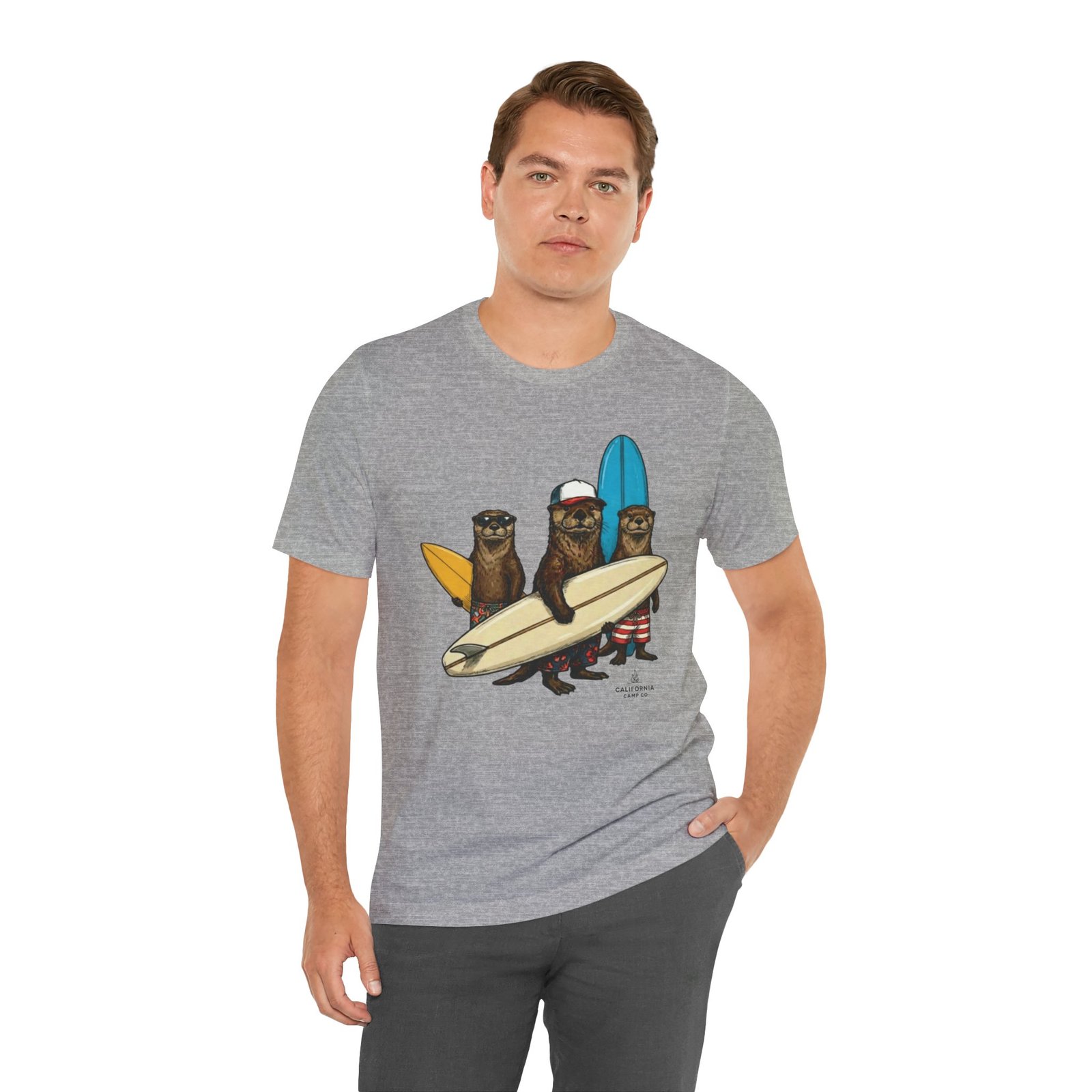 Light, soft, and quietly confident — this tee brings laid-back beach energy with a wink. Three sun-weathered otters stand shoulder-to-shoulder, each holding a scuffed surfboard ready for the next swell. The shirt’s airy feel and retail crew neckline make it easy to wear all day: grabbing coffee before dawn, walking the sand at low tide, or stretching after a surf session. It wears like a favorite you’ve had for years, with details that keep it honest — durable side seams and ribbed collar that hold shape, shoulder tape for comfort, and a tear-away label so nothing rubs while you paddle out. Ethically made from premium Airlume combed cotton and produced through mindful manufacturing, this tee keeps things simple, playful, and built to last.