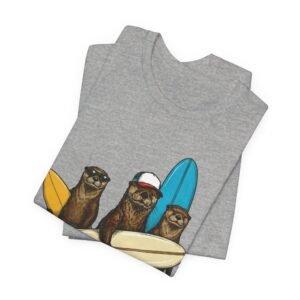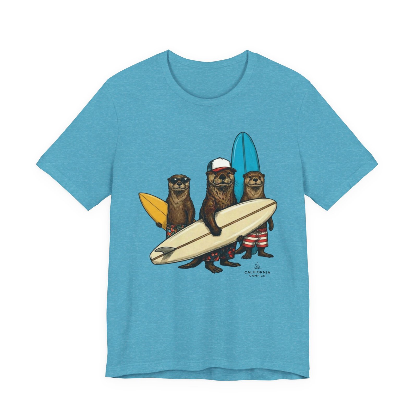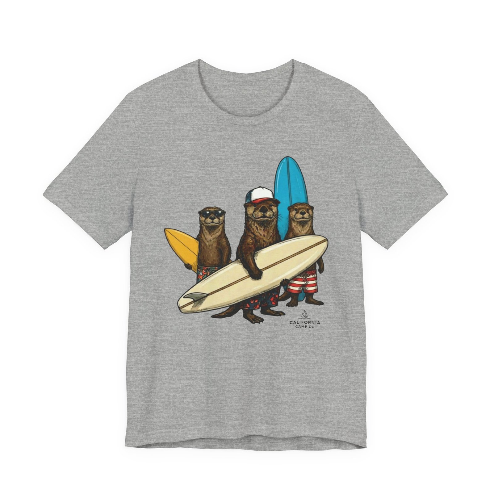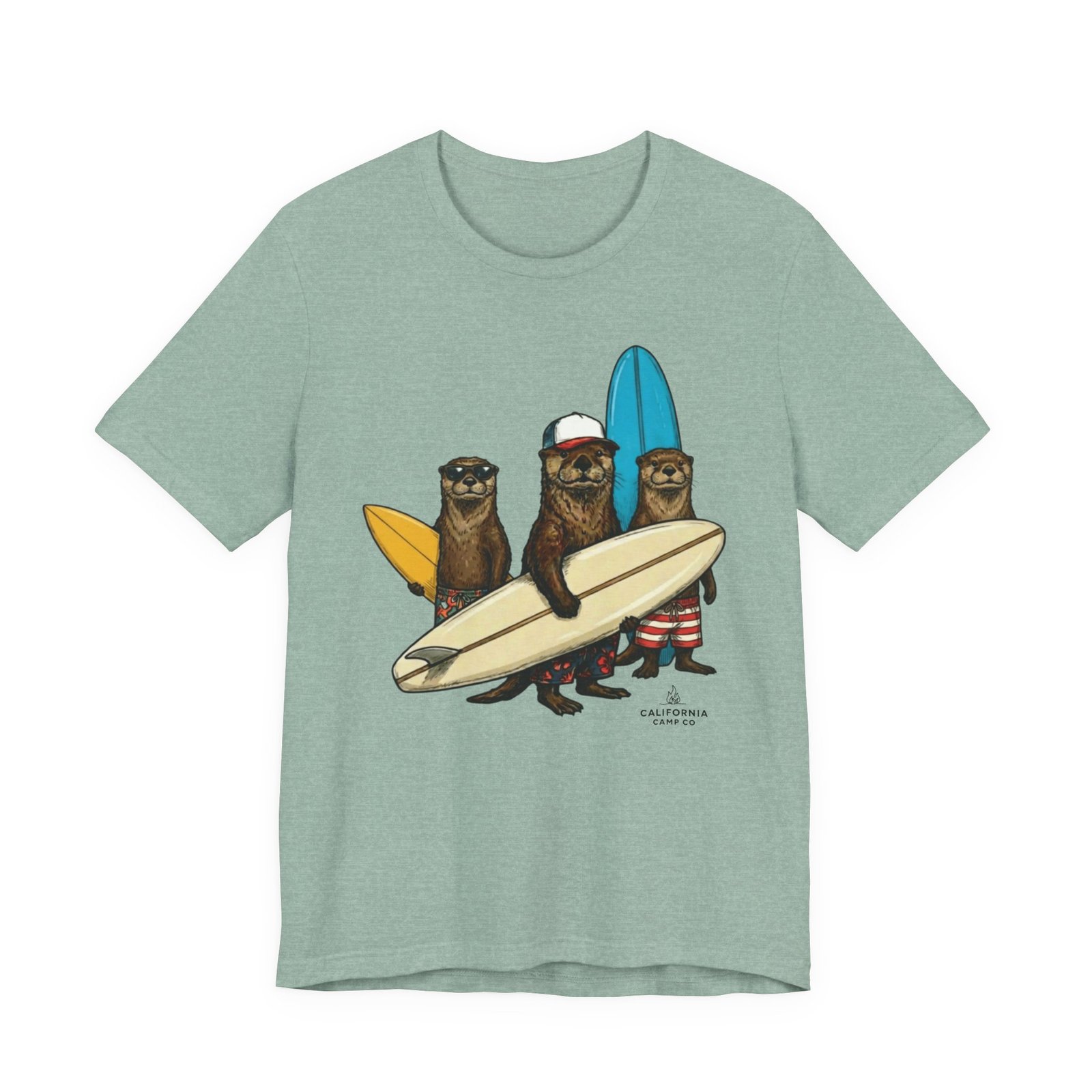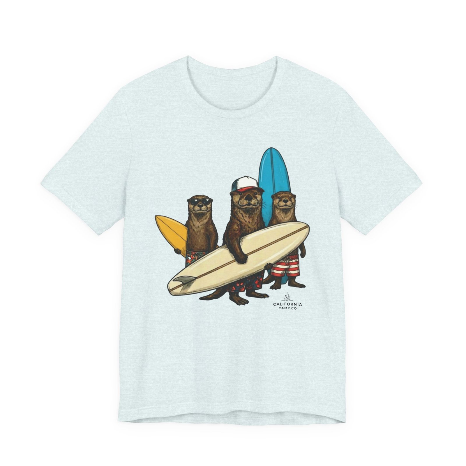 Light, soft, and quietly confident — this tee brings laid-back beach energy with a wink. Three sun-weathered otters stand shoulder-to-shoulder, each holding a scuffed surfboard ready for the next swell. The shirt’s airy feel and retail crew neckline make it easy to wear all day: grabbing coffee before dawn, walking the sand at low tide, or stretching after a surf session. It wears like a favorite you’ve had for years, with details that keep it honest — durable side seams and ribbed collar that hold shape, shoulder tape for comfort, and a tear-away label so nothing rubs while you paddle out. Ethically made from premium Airlume combed cotton and produced through mindful manufacturing, this tee keeps things simple, playful, and built to last.