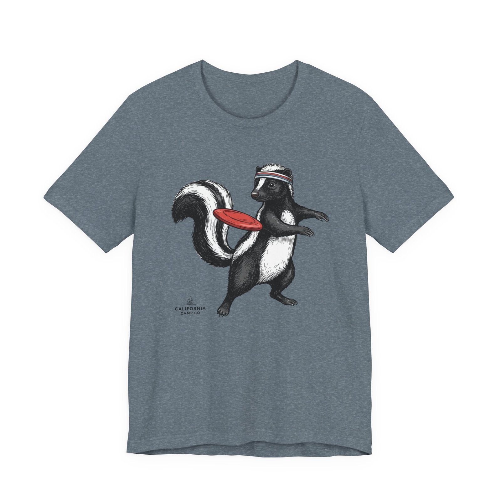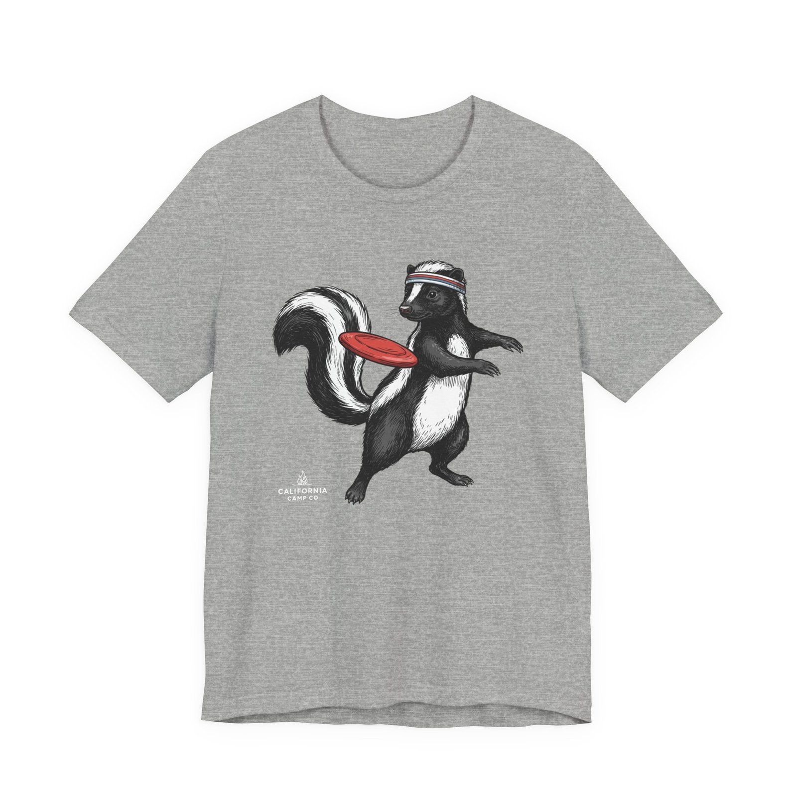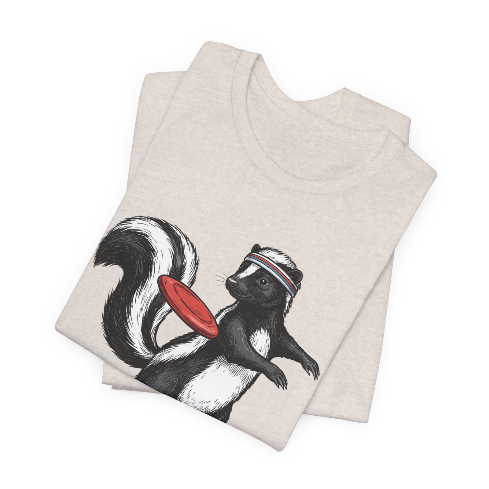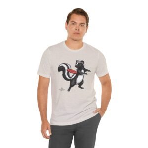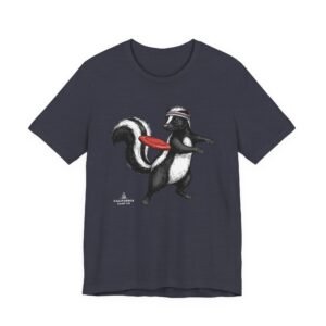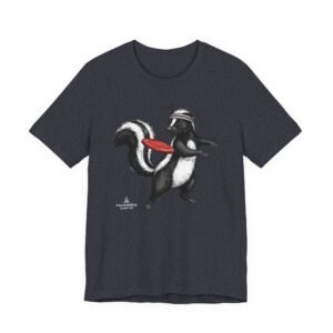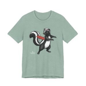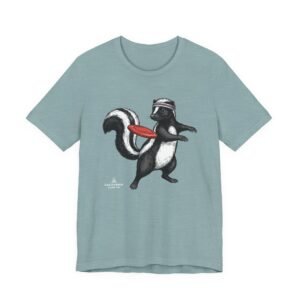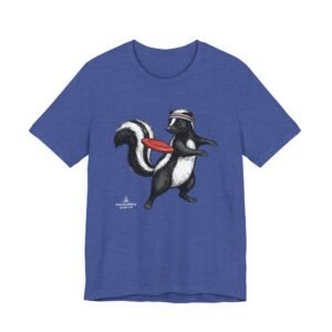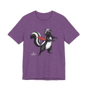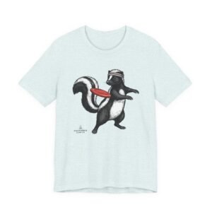 Lightweight comfort meets playful personality. This soft, breathable tee features a hand-drawn skunk mid-stride with a retro headband and a bright red frisbee — a quirky scene that brings movement and humor to everyday wear. The retail fit and classic crew neckline make it easy to layer under a jacket or wear solo while running errands, meeting friends, or heading to a casual weekend hangout. Thoughtful construction—side seams, ribbed knit collar, shoulder tape, and a tear-away label—keeps the shirt feeling tidy and comfortable all day. Ethically produced on high-quality Airlume combed ring-spun cotton, it’s built to be lived in, laughed in, and worn again and again.